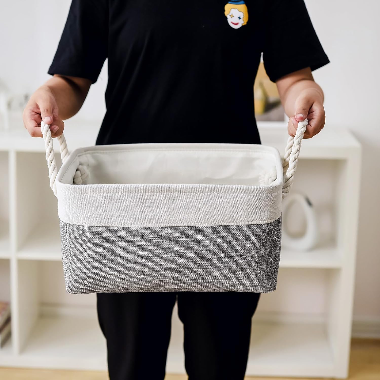 - HANDMADE STICHED & STURDY - TheWarmHome closet organizer outside fabric is made of more linen & thicken Environmental EVA, and used a lining material for the inside, Semi handmade stitched. Sturdy metal rod frame around the top keep the basket shape. Strong seams and rope side handles, make this storage baskets are sturdy and easy to grab. Stand up great on their own even unfilled and ensure a greater product lifespan.