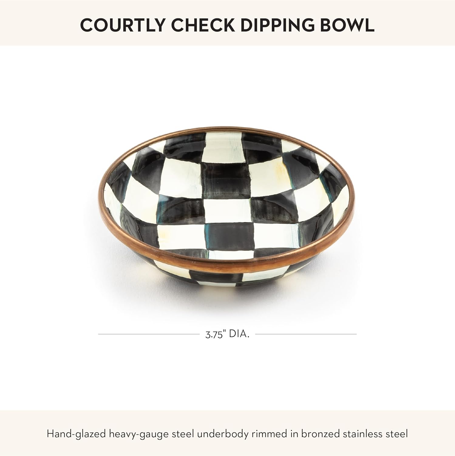MACKENZIE-CHILDS Enamel Dipping Bowl, Small Serving Bowl for Entertaining, Black-and-White Courtly Check
