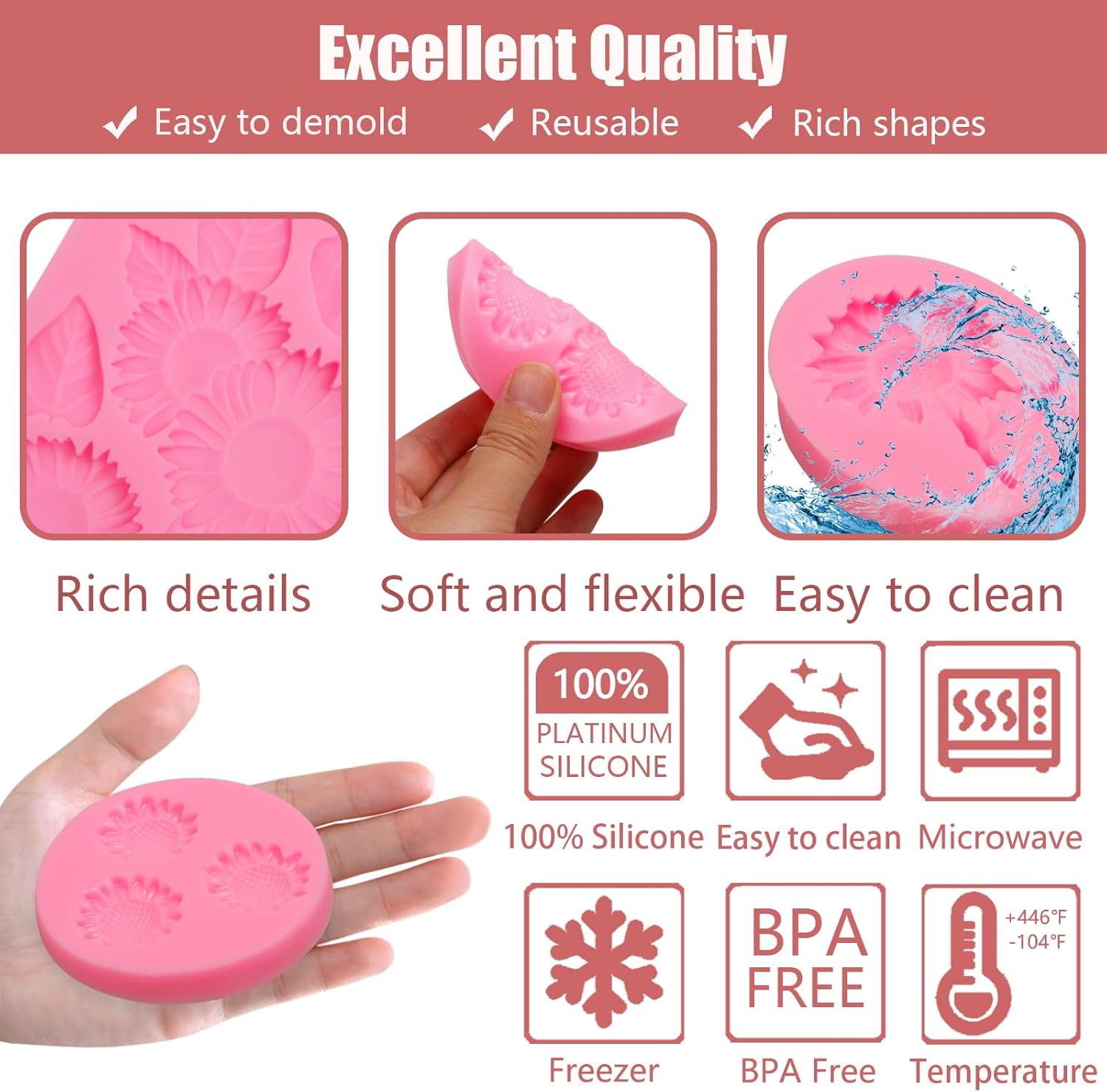 - [PREMIUM MATERIALS]: Sunflower Silicone Fondant Molds are Made of Food-Grade Silicone, Durable. Can be Used in Environments From -104°F to +446°F. Reusable in Microwave, Oven, Freezer and Dishwasher.