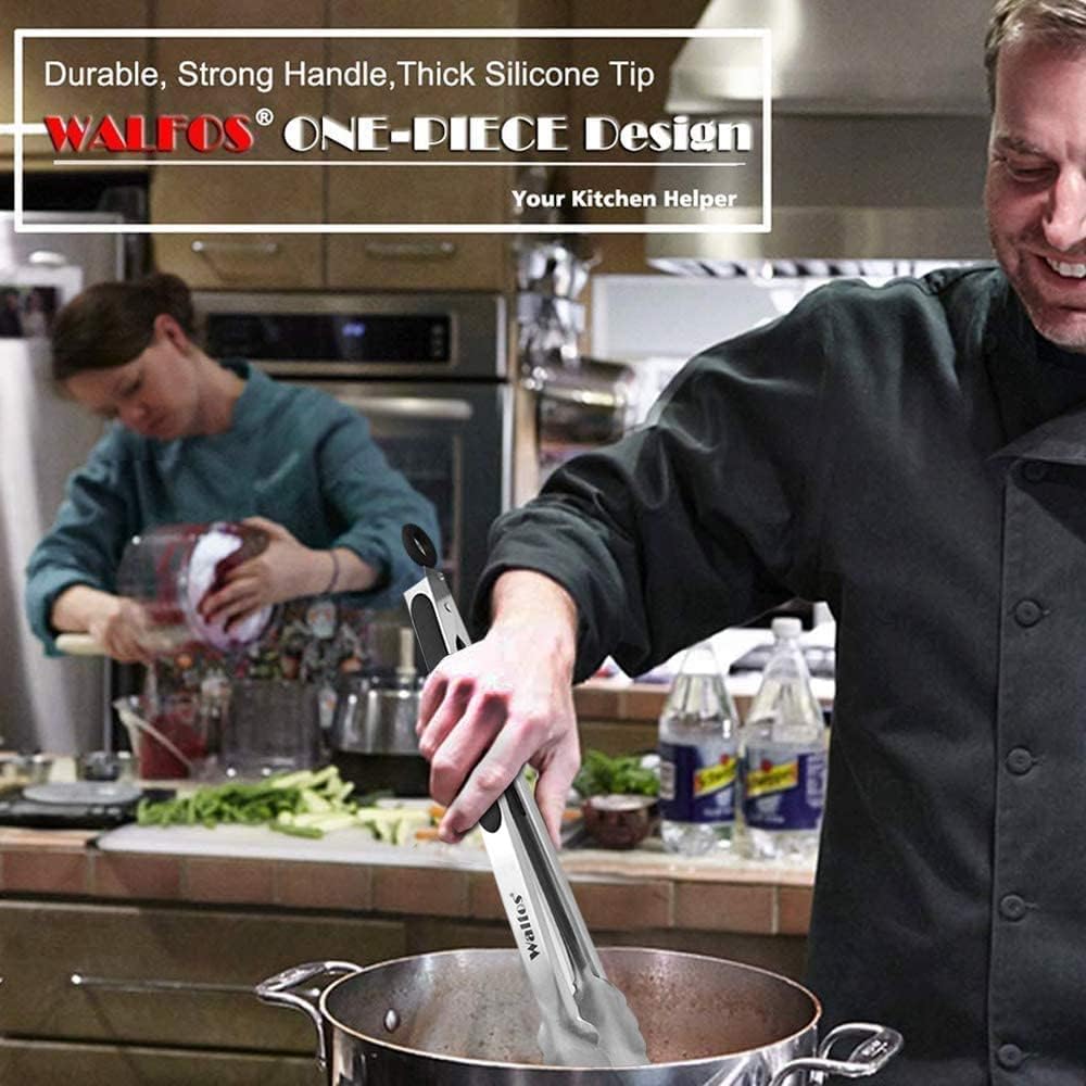 - ★LOCKING MECHANISM & PULL-RING TECHNOLOGY -WALFOS ring-pull technology locking tongs will keep your tongs from opening and closing accidentally which will allow you to facilitate better control while using them. And can be conveniently dried and stored.