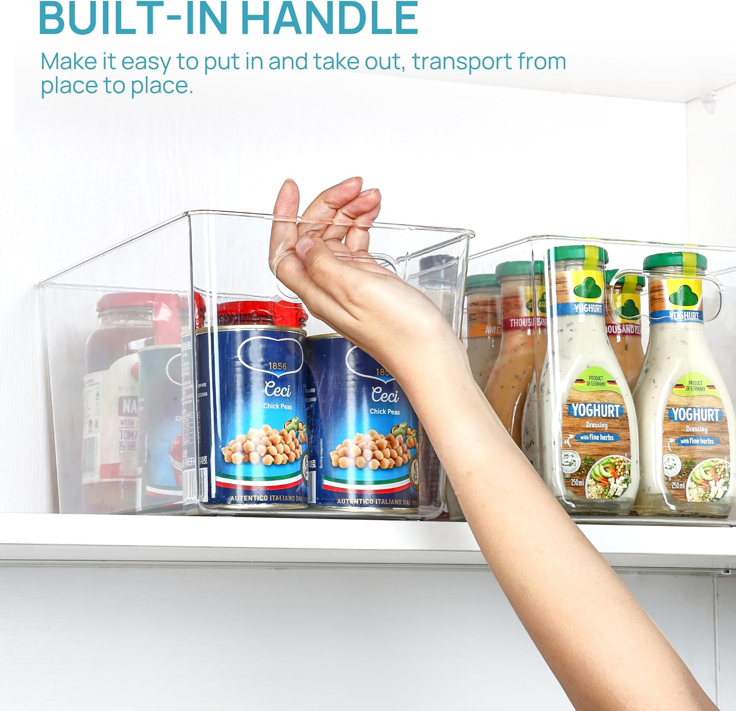 - Built-in Handles ---- The bins have handle grips on the edge making it easy to carry and access contents. You just take the bins out and get the items you want, then put it back in so simple. Organize all of your kitchen essentials to make organizing and everyday living with ease, creating a clean and organized home.