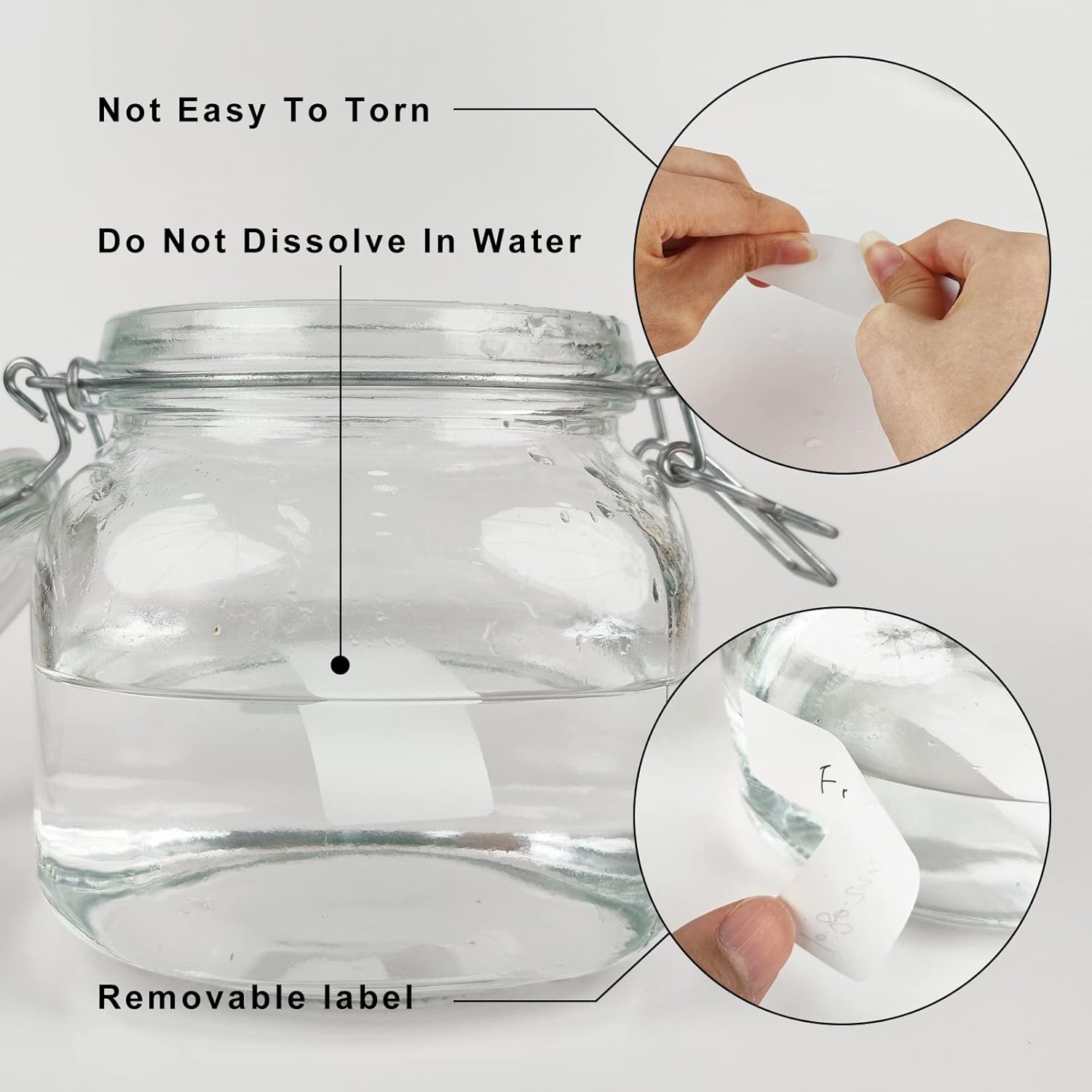 - Good water resistant paper that not easy to be torn writable,not blurry but can easily be removed and replaced no paper or glue residue left on the container