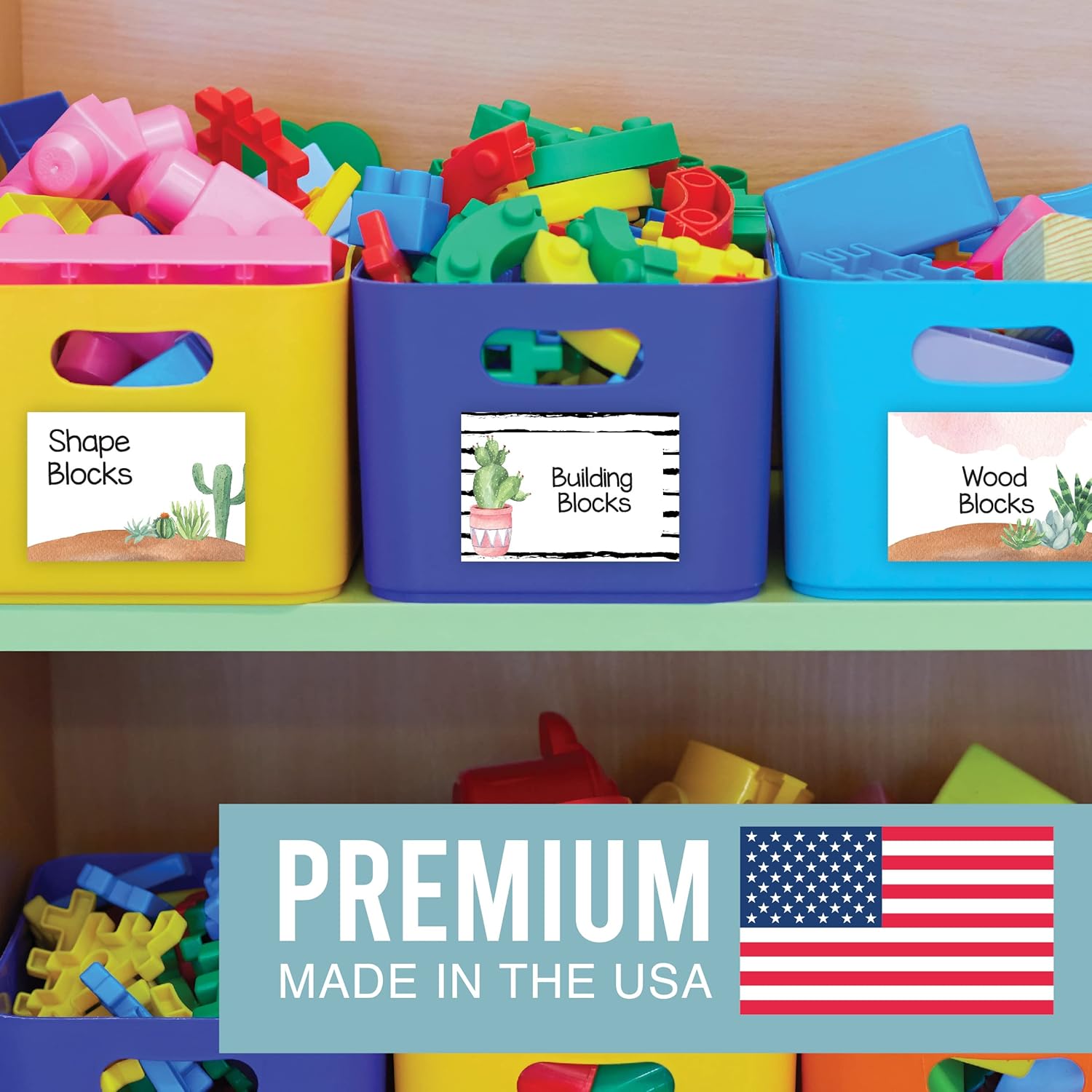 Name Tags Sticker - 56 Nametags for Classroom, Name Tag Stickers for Kids, Adhesive Classroom Labels for Teachers, Nametags Sticker for Clothes, Decorative Labels, Cactus Cubby Tags