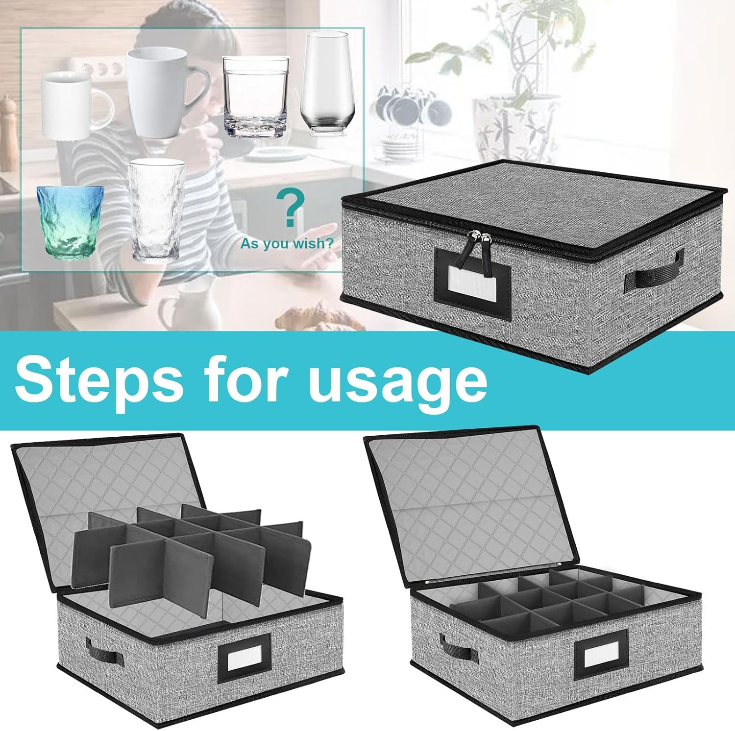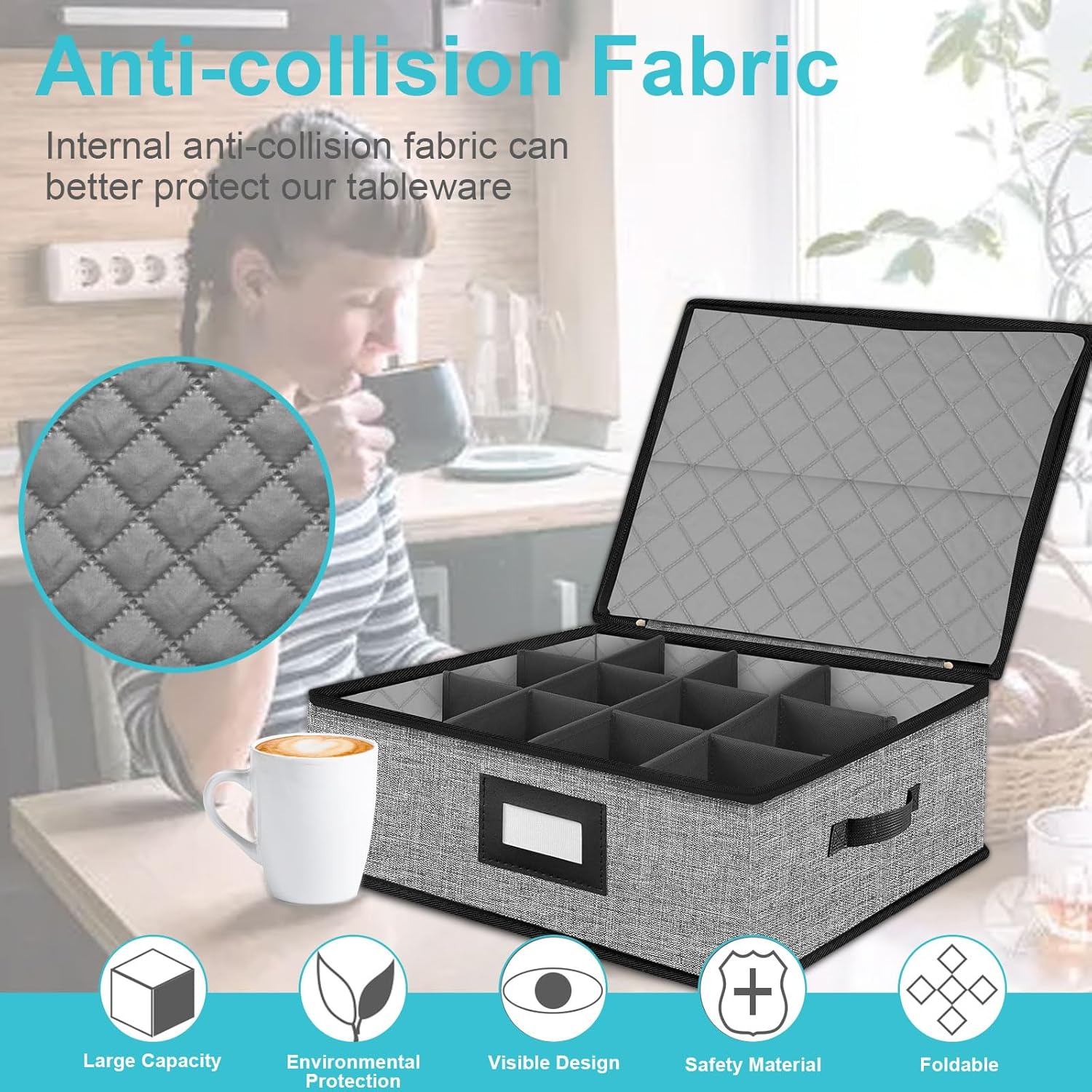 Quilted Mug Cup Storage Box-China Storage Containers Hard Shell,Cup Storage Containers with Lid for Moving Transport,Kichen Dinnerware Storage