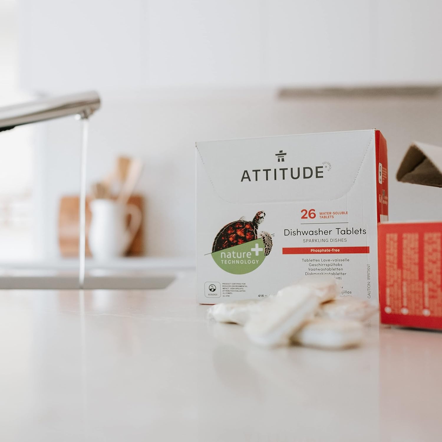 ATTITUDE Dishwasher Tablets, Water-soluble Plant- and Mineral-Based Effective Formula, Phosphate-free, Vegan and Cruelty-free, Unscented, 26 Count (Pack of 2)