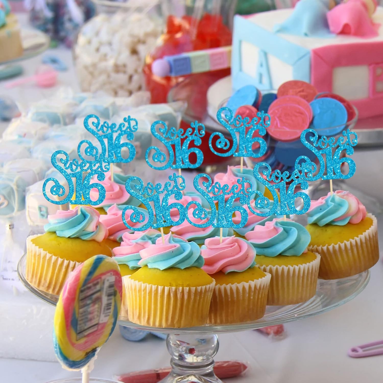 - 💕💕These Sweet 16 Cupcake Toppers are so cute and good for 16th birthday theme party, 16th anniversary theme party, 16 fabulous theme party cupcake decorations. They can make your cupcake more attractive and bring the fun to your party. You can also apply them for ice cream, fruits, cookies and other desserts.