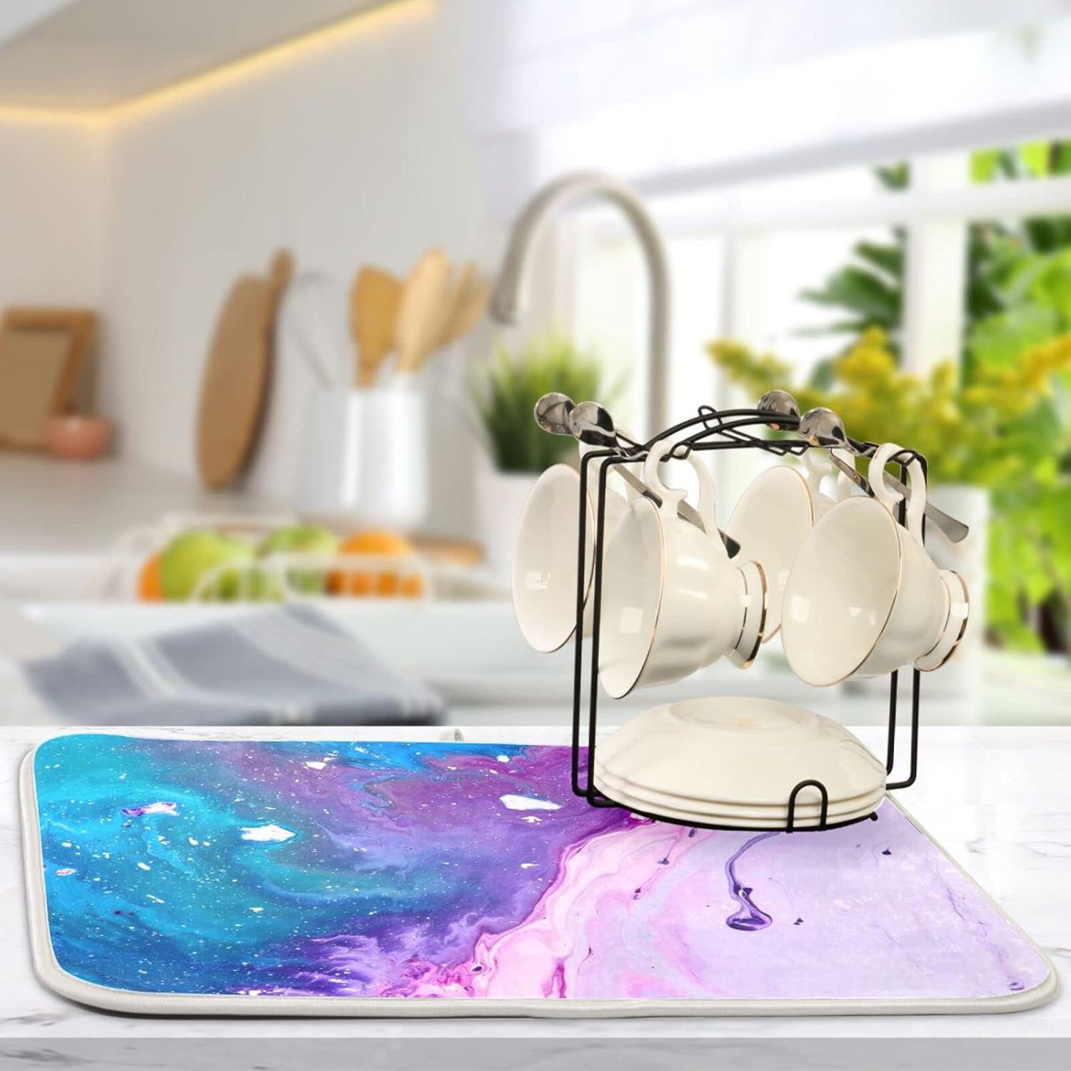 Super Absorbent Dish Drying Mat, Microfiber Fast-Drying Dish Mat, 16" x 18", Kitchen Dish Drying Pad, Abstract Purple Blue Marble