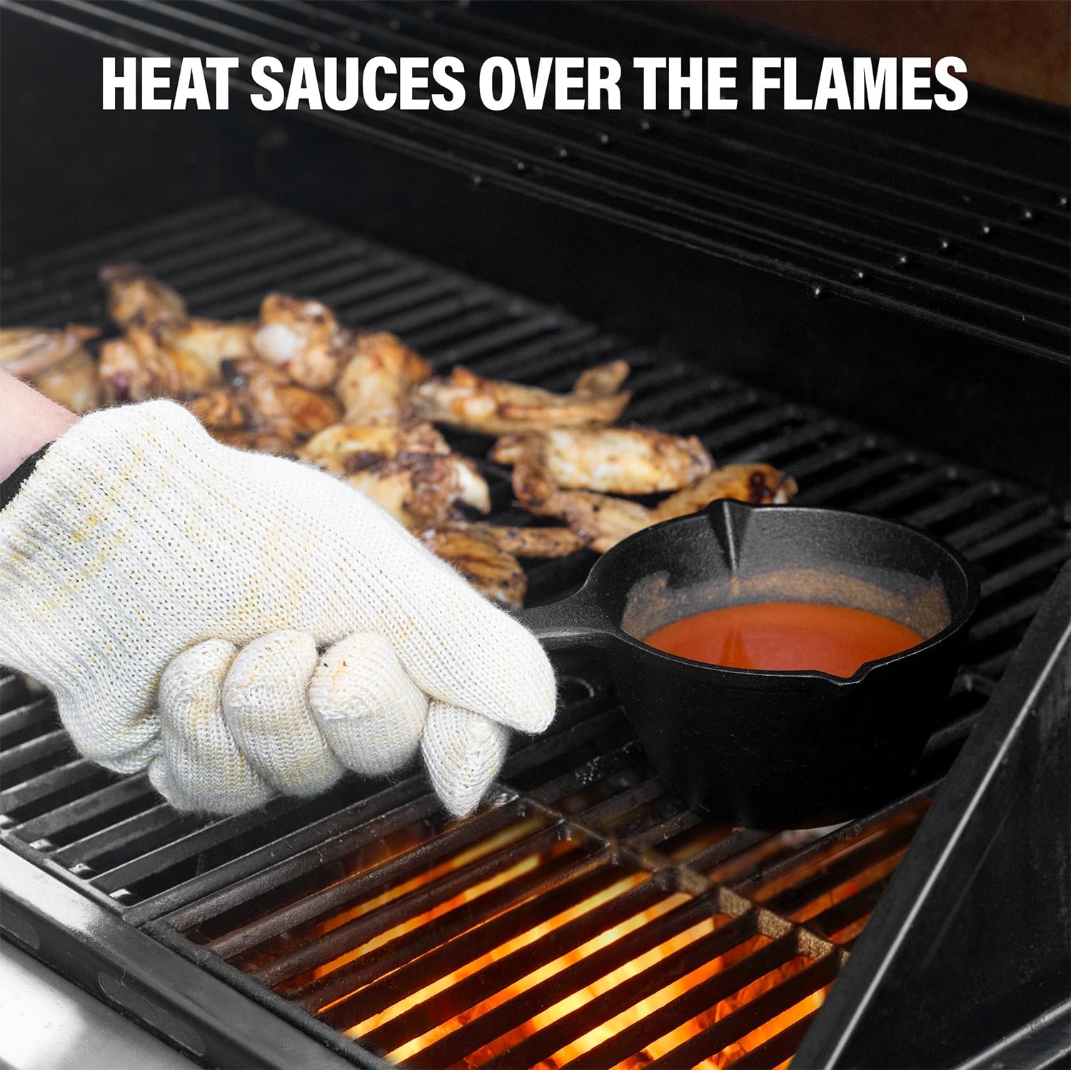 Small Cast Iron Basting Pot with Silicone BBQ Brush – Cast Iron Saucepan for Grilling, Smoking, Butter Melting Pot, 15 Oz