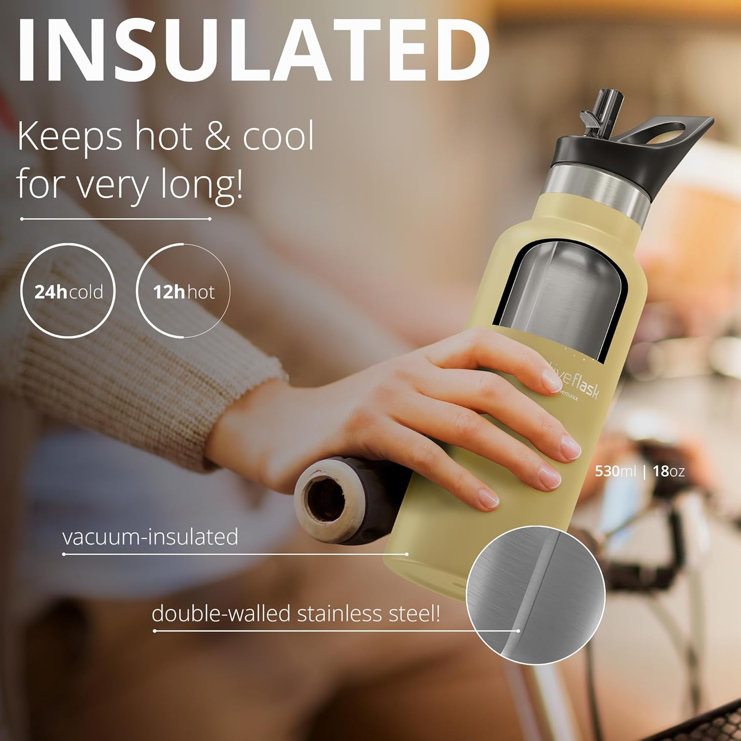 - š§ šÆ šššššš„šš”š§ šš„šš”ššš”š ššš£š¦ | š¢š”š š ššš š¢š š¦š§ššš”ššš¦š¦ š¦š§ššš - With the 3 different, 100% leak-proof drinking caps: sport, straw and our new BAMBOO CAP MADE OF STAINLESS STEEL, your ACTIVE FLASK is ready for any kind of drink and all challenges of everyday life in no time.