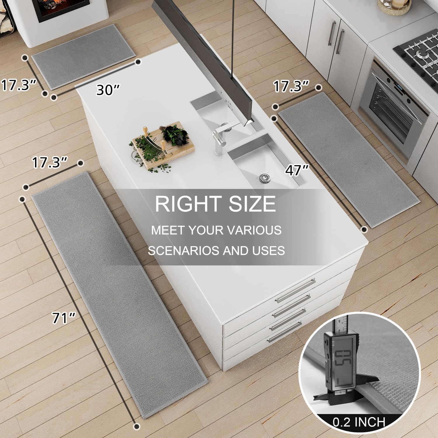 Kitchen Mat Set of 2 PCS, Cushioned Non Slip Rugs for Kitchen Floor, Absorbent Runner Comfort Standing Mats Washable for Kitchen, Office, Home (Grey, 17.3"x47"+17.3"x30")
