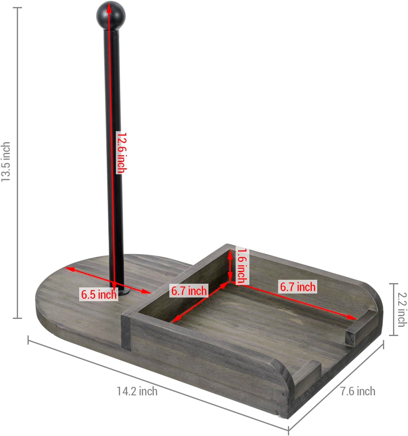 - Approximate Dimensions: Overall - 13.6 L x 7.0 W x 13.4 H; Napkin Tray - 6.3 L x 6.3 W x 1.5 D; Spindle - 11.6 H; Sphere - 1.2 Diameter (in inches)
