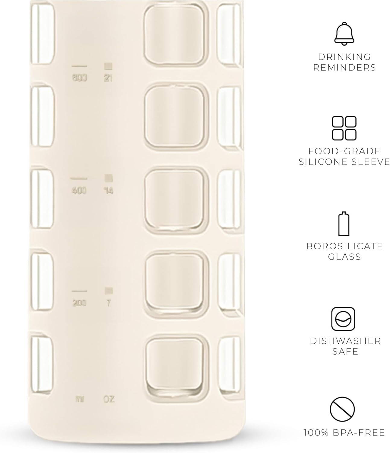 - Stylish protection: Silicone sleeve adds grip and impact resistance with color options; available in multiple sizes including big glass water bottles and 32oz water bottles.
