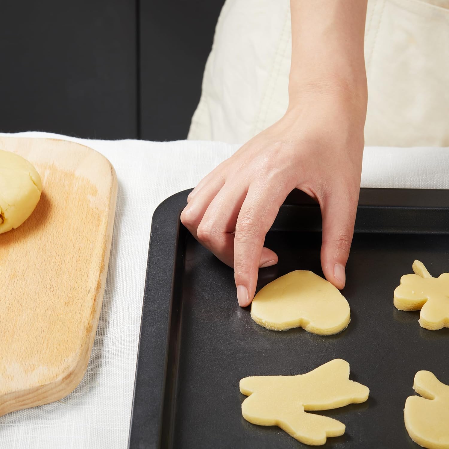 - RUST-PROOF STAINLESS STEEL COOKIE CUTTERS - Our cookie tray set also contains five sturdy cookie molds. Made of 430 stainless steel material, which has a good rust-proof effect. We believe your children will also love the cute cookie shape