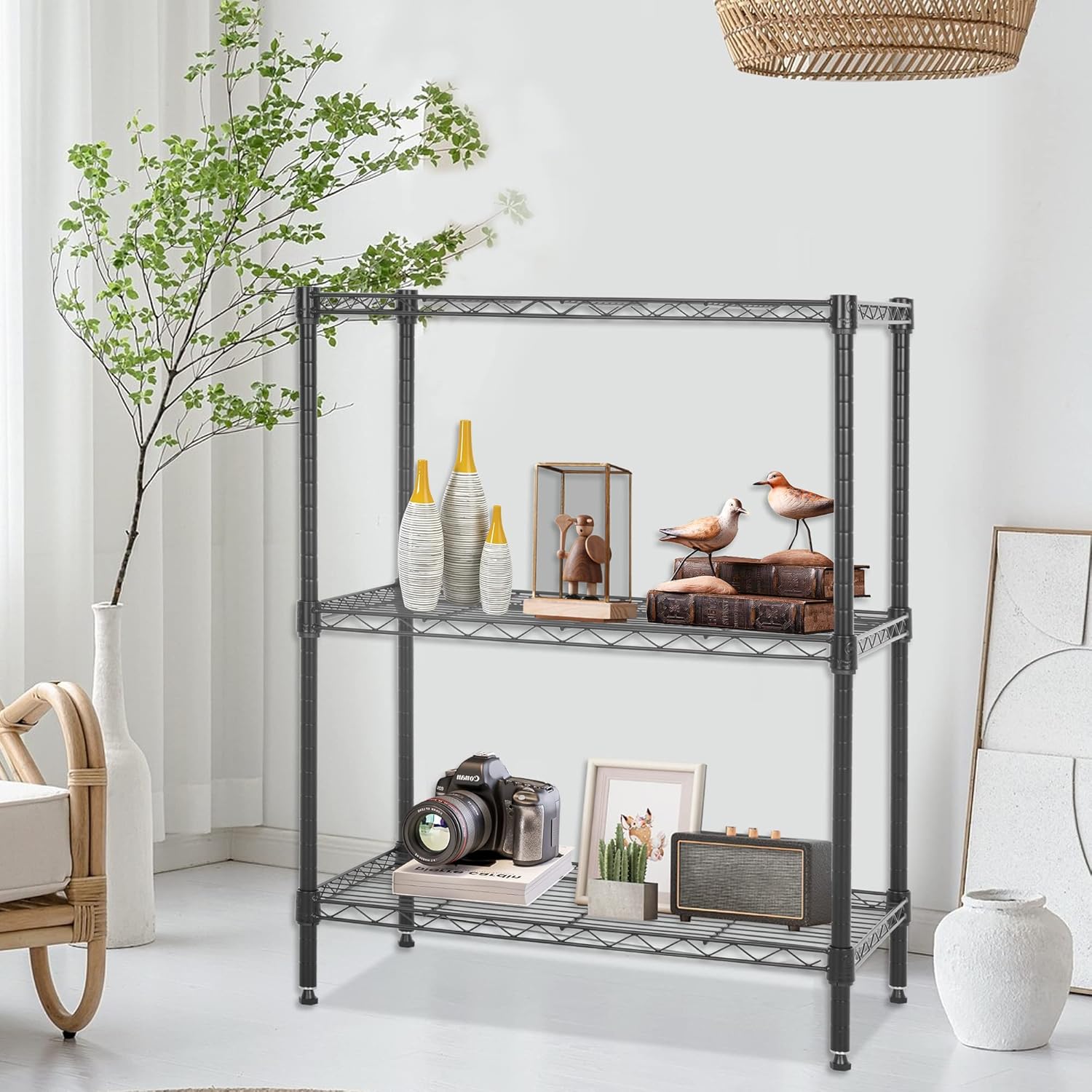 FDW Wire Shelving Units Adjustable Metal Storage Rack 23D x 13W x 30H 3 Tier Pantry Shelves NSF Kitchen Shelf for Kitchen Garage Commercial Small Places,Black