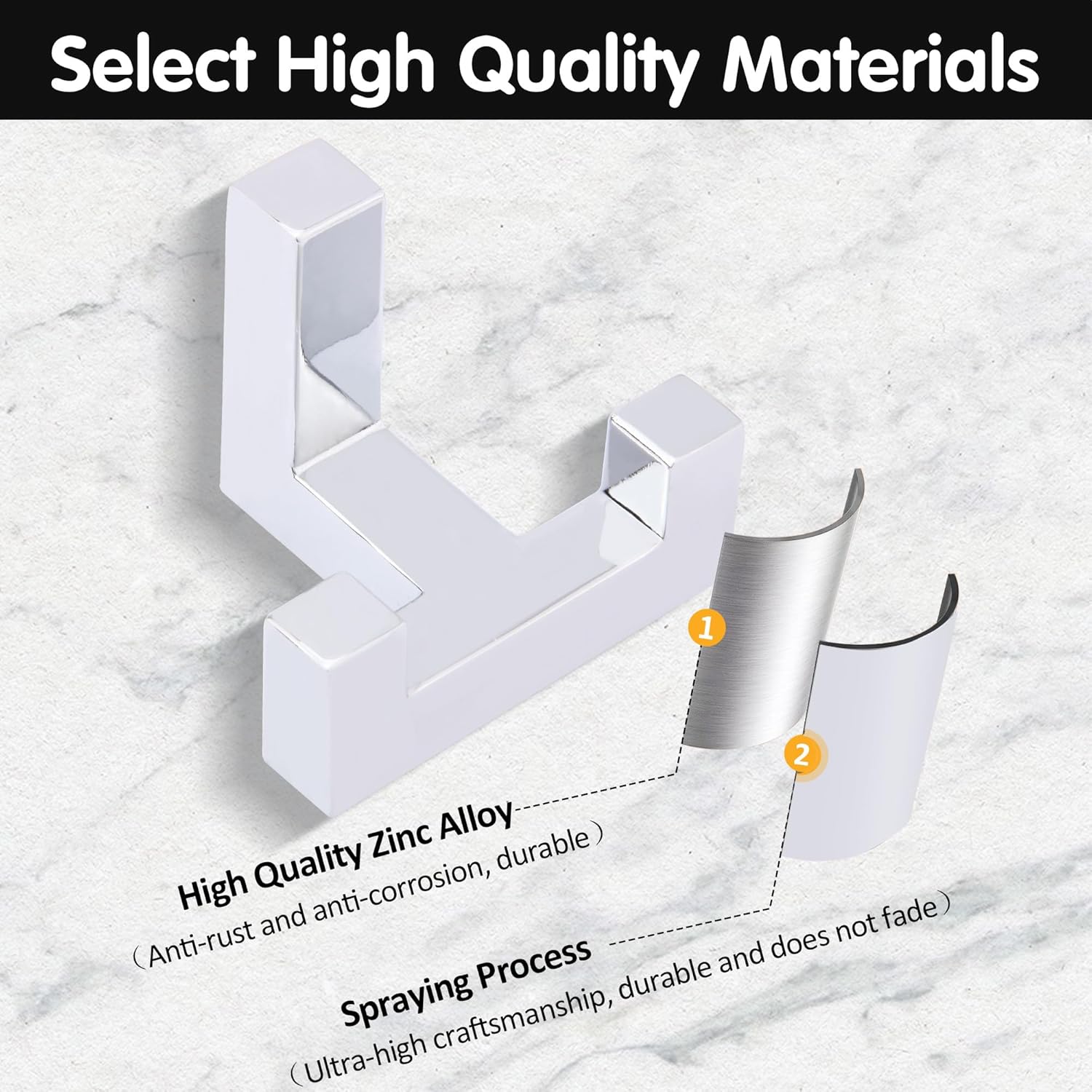 5 Pack Heavy Duty Coat Hook Wall Mount with Screw Retro Double Coat Hook Utility Hook for Coats, Scarves, Bags, Towels, Keys, Hats, Mugs (Chrome)