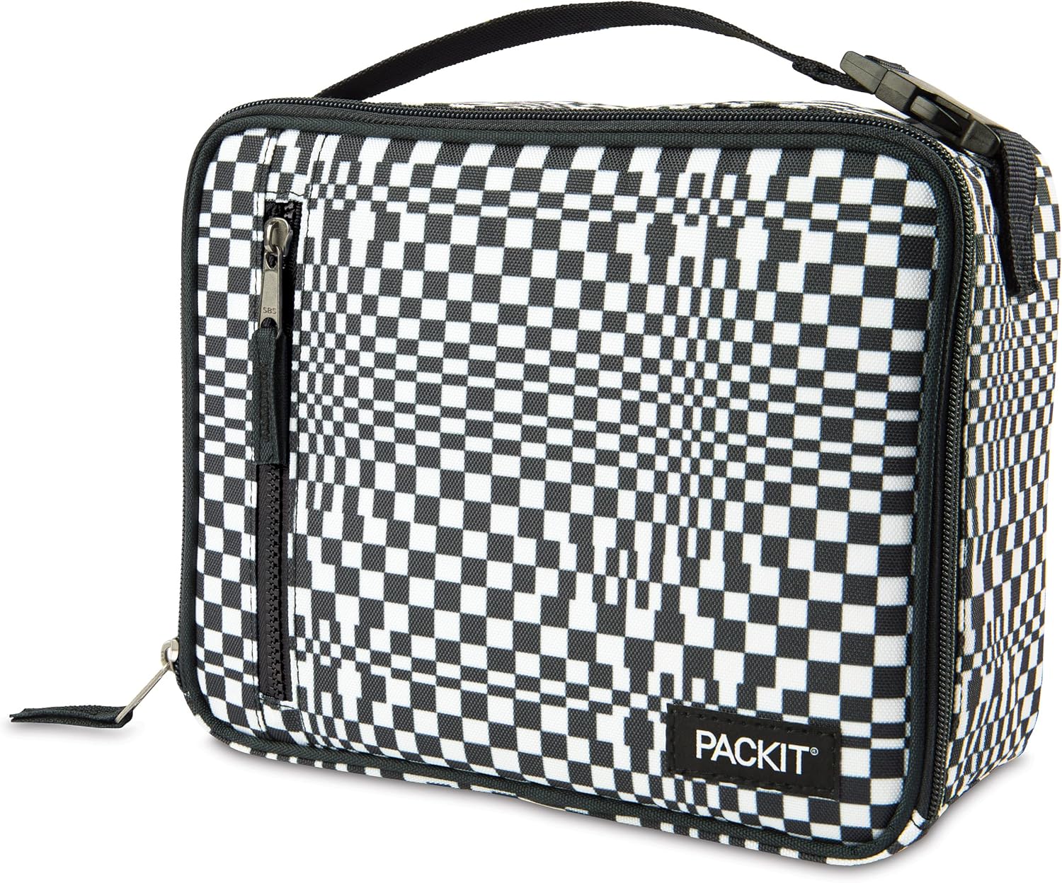 PackIt Freezable Classic Lunch Box, Checked Out, Built with EcoFreeze Technology, Collapsible, Reusable, Zip Closure With Zip Front Pocket and Buckle Handle, Perfect for School Lunches