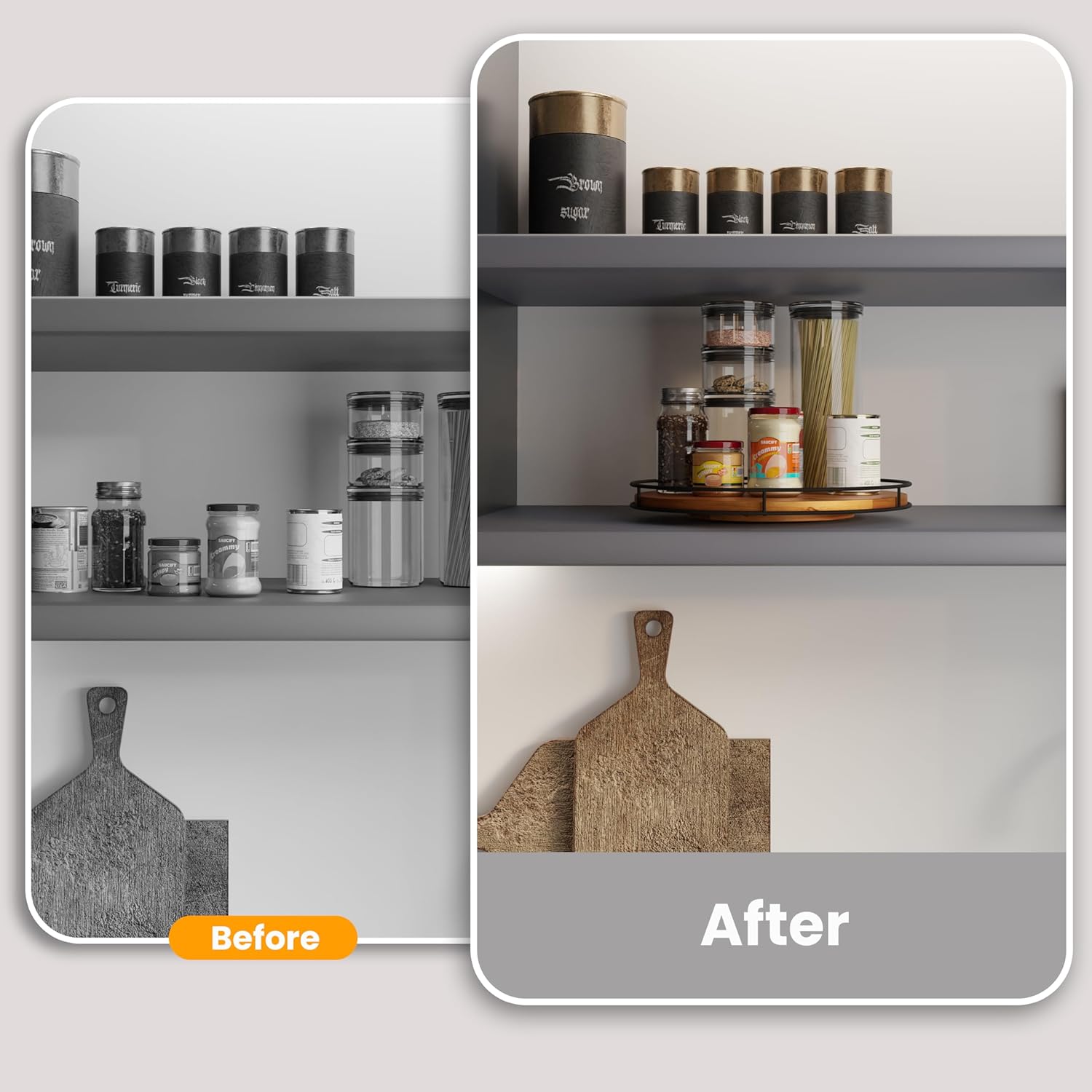 - Versatile and Spacious: With its expansive 16-inch diameter, this lazy Susan offers abundant storage space. It easily accommodates a wide range of items, making it a versatile addition to your kitchen, dining area, or living room. Whether it's organizing spices, displaying decorative pieces, setting up a delightful afternoon tea or coffee spread, or arranging an appealing charcuterie board, this lazy Susan has you covered.