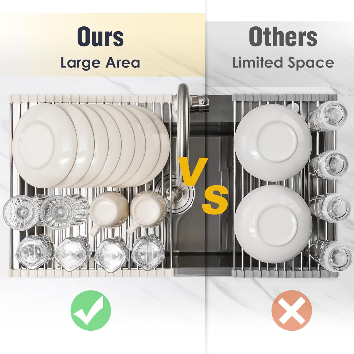 Tomorotec 17.7" x 15.5" Roll Up Dish Drying Rack Over Sink Drying Rack Sink Cover Kitchen Sink Accessories Gadget Multipurpose Organizer Foldable Stainless Steel Drainer