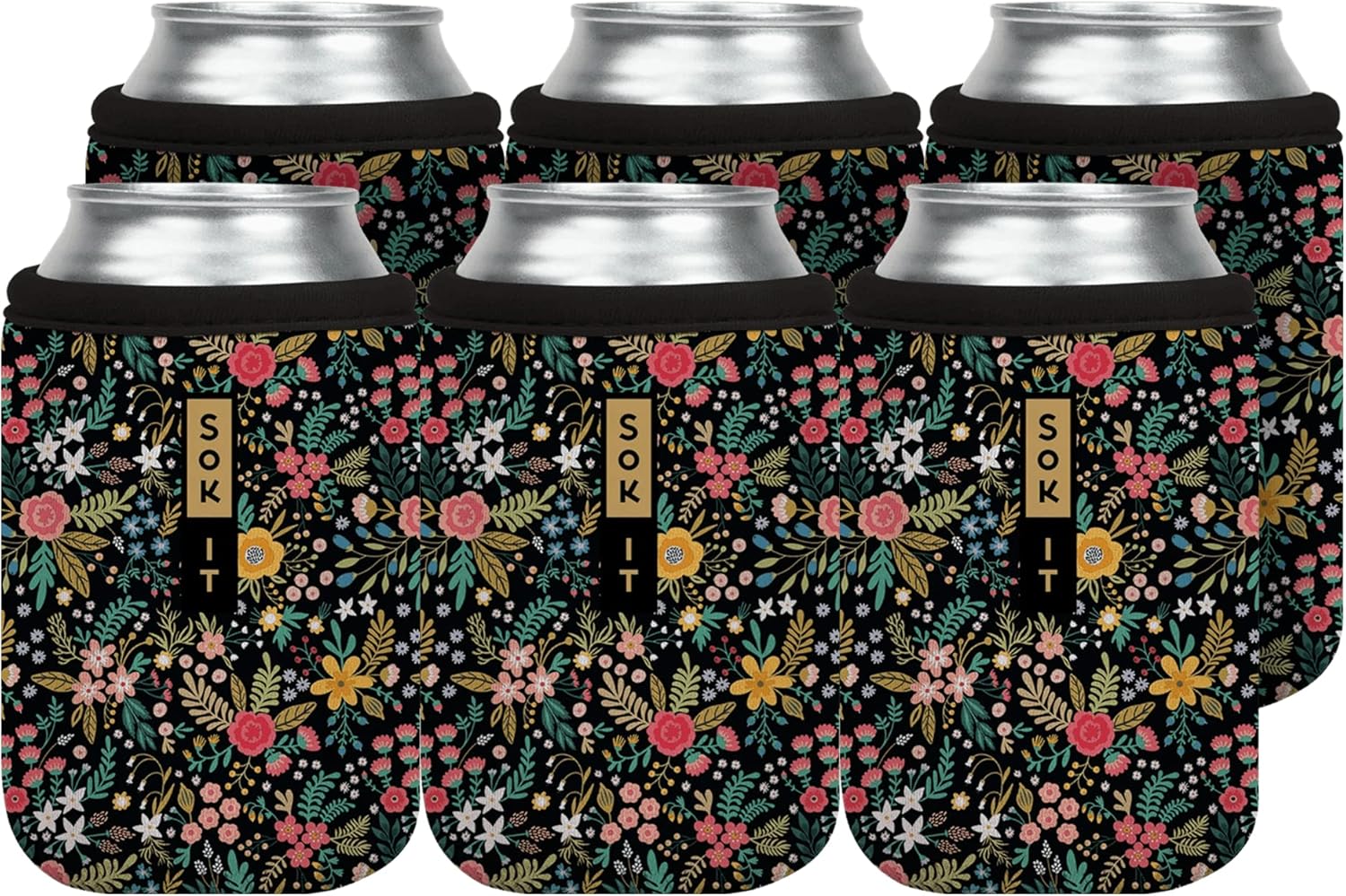 Sok It CanSok 6 Pack Sleeve for Beer & Soda Insulated Neoprene Cover (English Garden Picnic, 12oz Can Sleeve - 6 Pack)
