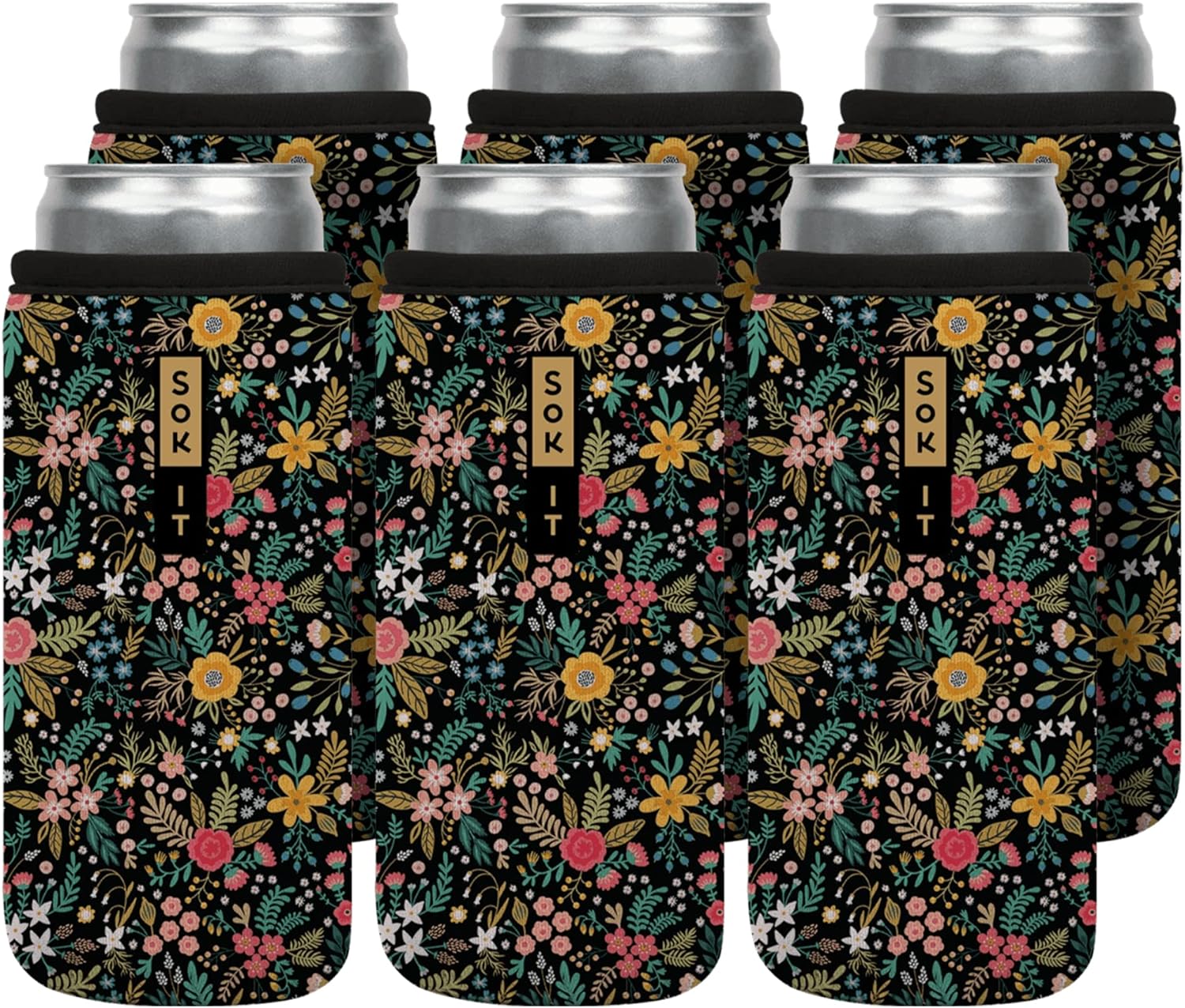 Sok It CanSok 6 Pack Sleeve for Beer & Soda Insulated Neoprene Cover (English Garden Picnic, 12oz Slim Can Sleeve - 6 Pack)
