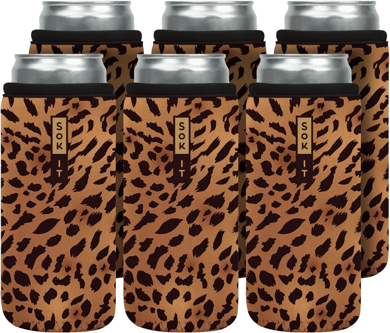 Sok It CanSok 6 Pack Sleeve for Beer & Soda Insulated Neoprene Cover (Classic Leopard, 12oz Slim Can Sleeve - 6 Pack)