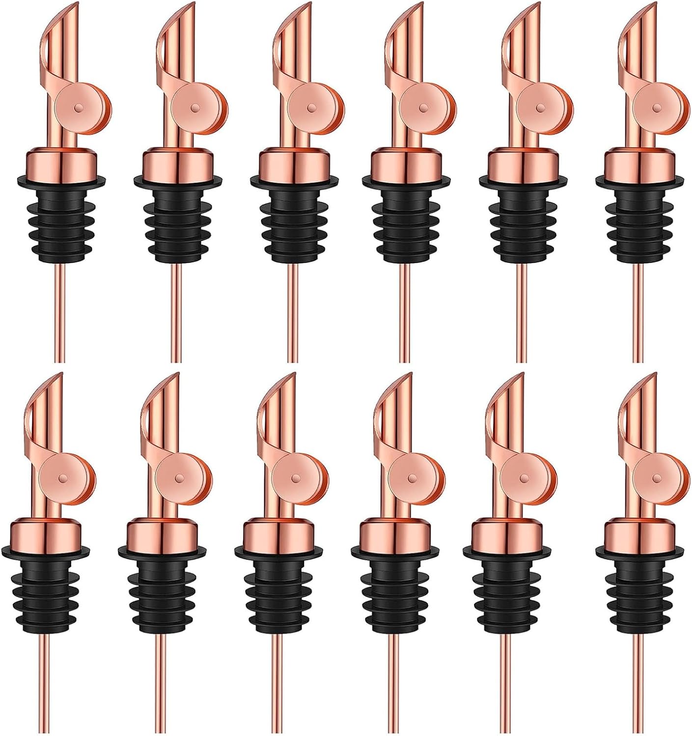 Pafusen 12 Pack Weighted Liquor Pour Spout, Auto Flip Olive Oil Dispenser Spout, Pour Spout for Liquor Bottles, Olive Oil Spout, Bottle Pourers for Alcohol Wine Syrup Home Bar Accessories Rose Gold
