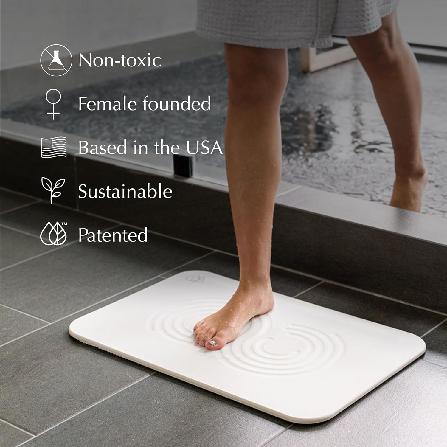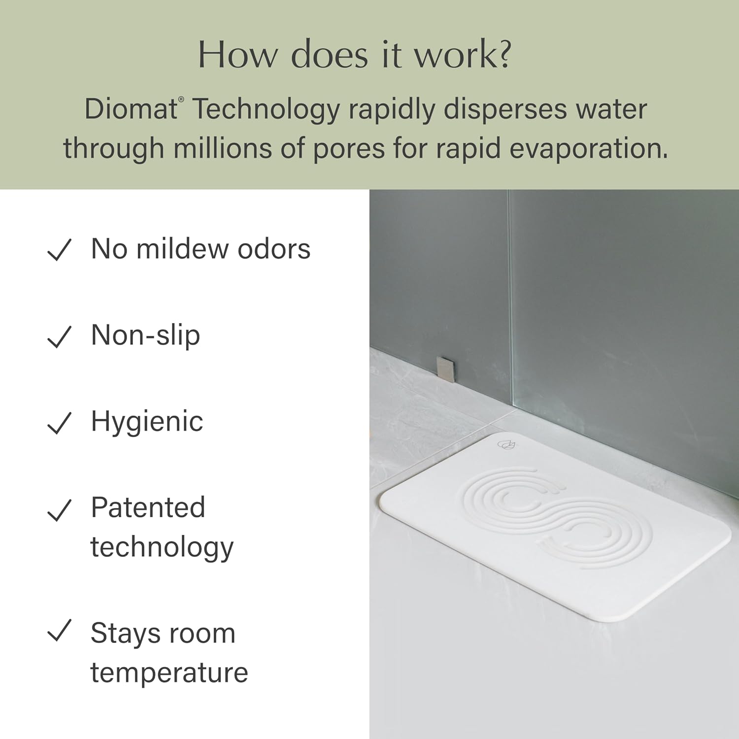 - DRIES INSTANTLY - Our quick-dry stone bath mat, made from diatomaceous earth, holds up to 150% of its weight in moisture and evaporates it within seconds. This ceramic-like material feels like natural stone, offering a hygienic and durable alternative to traditional bath mats.