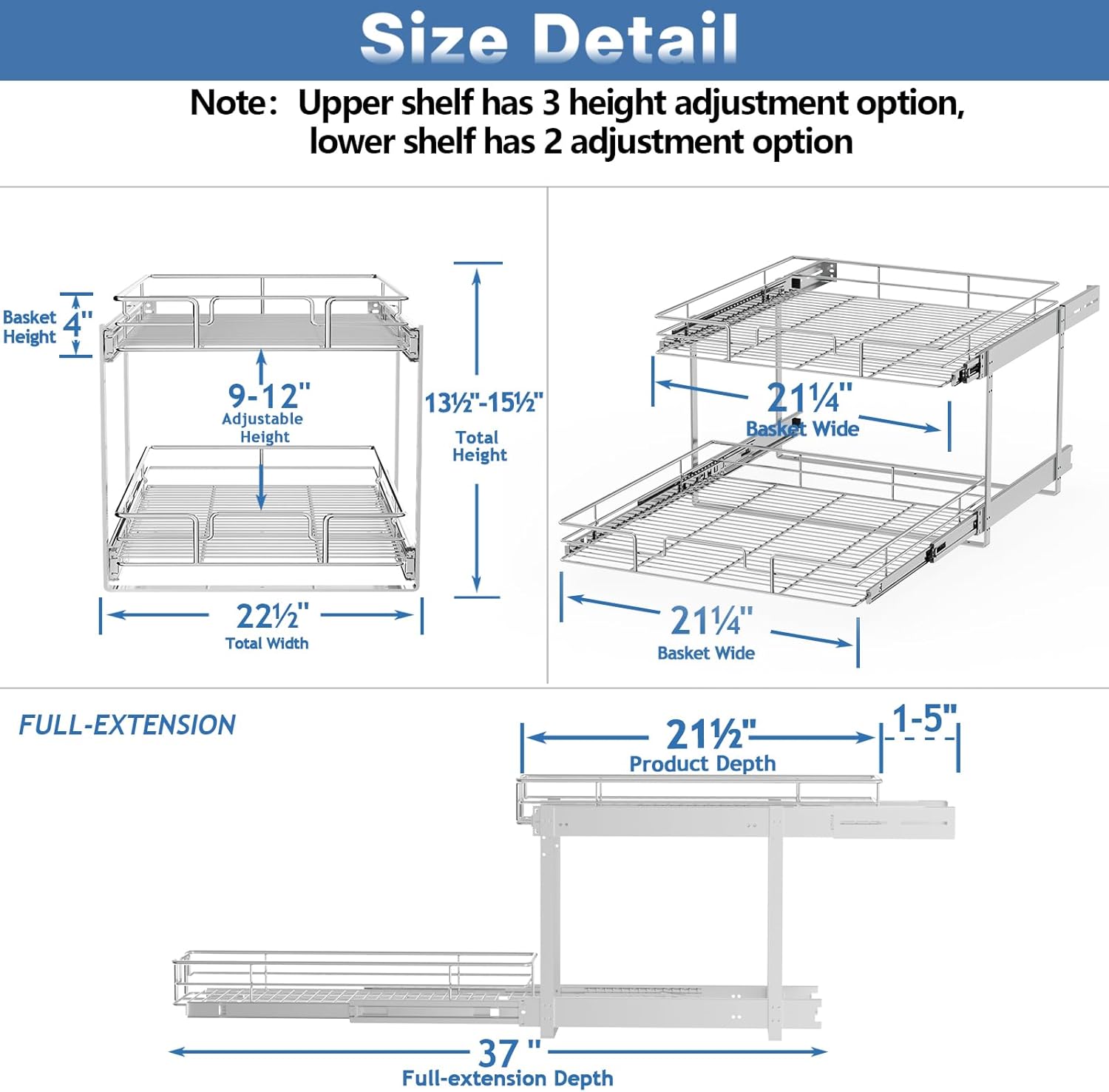 - 【Item Size】Organizer dimensions:22½"W x 21½"D x 15"H. Fits 24" cabinet openings and larger. Please measure your cabinet opening do not include the hinge width, just measure from hinge to opposite side. You can contact seller via Amazon Messages to make sure if the size fit your cabinet.