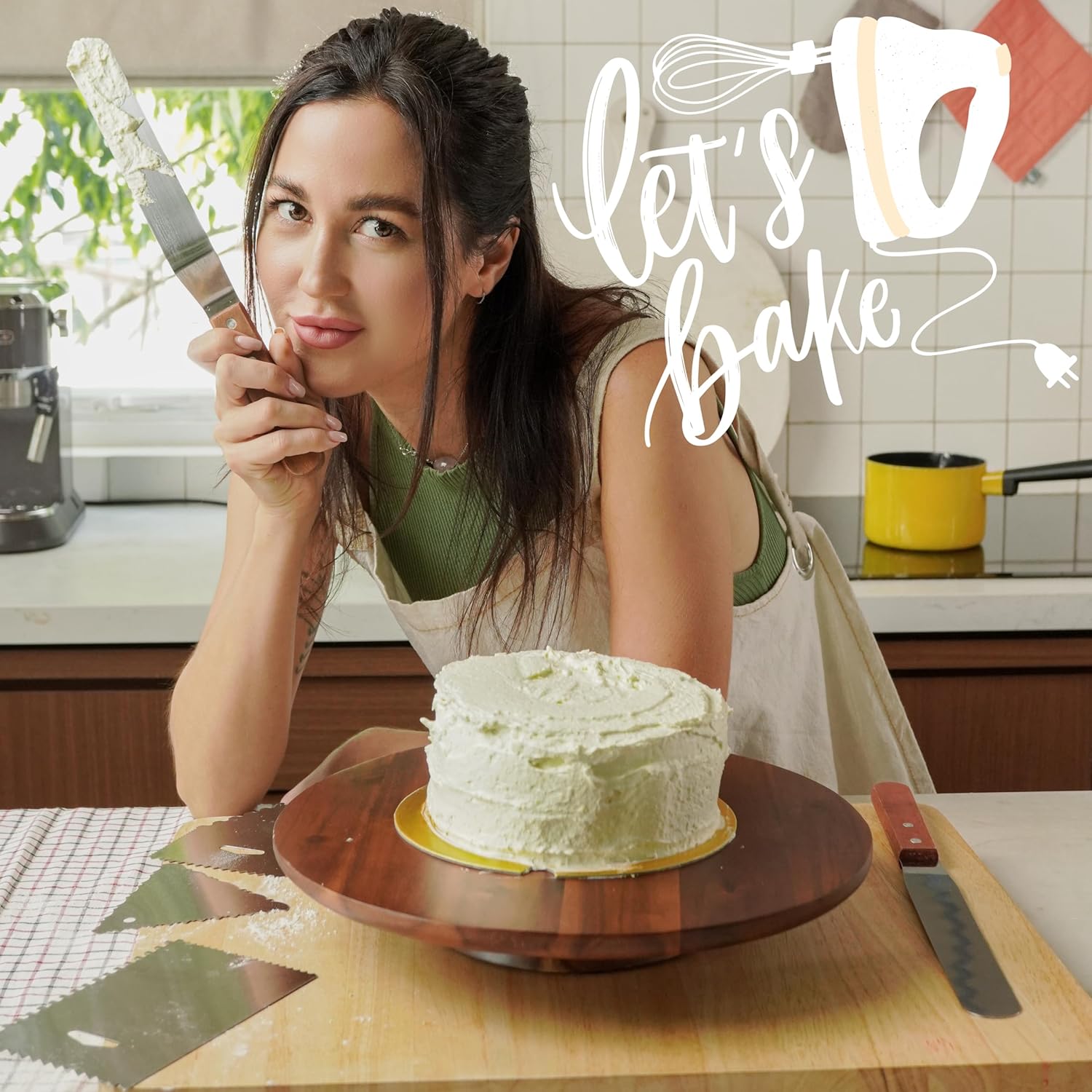 - A Smooth 360° Rotation Bearing: The square ball bearing plates are available in 3.7” and 300Lbs capacities. With a smooth rotation mode, users can easily reach other cake sides. A non-slip mat is also added to keep the turntable cake stand excellent stability in place while decorating and displaying.