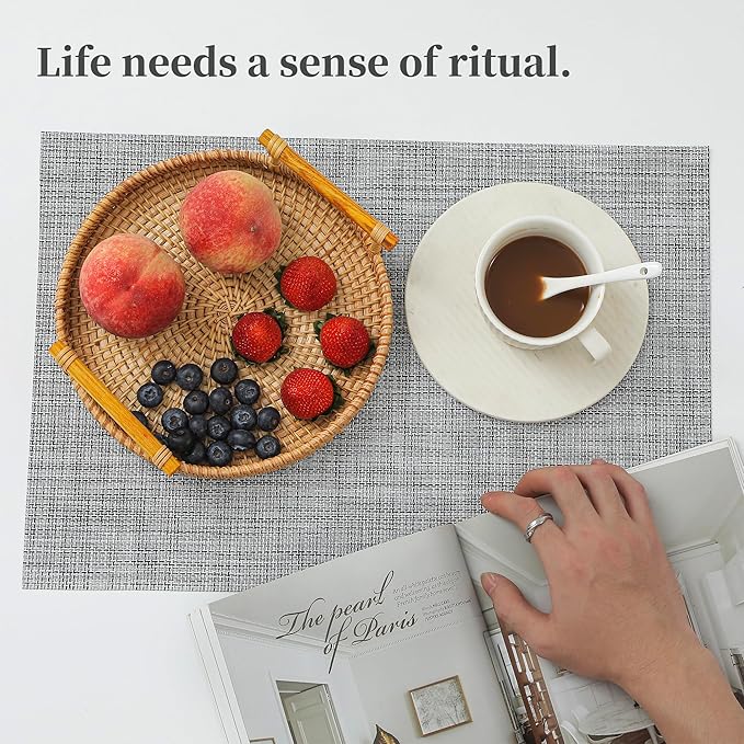 - Elegant and Practical Design: With a luxurious vinyl woven texture, precision cutting, and heat-trimmed edges, our double-sided placemats offer a sophisticated and practical solution. They provide a non-slip surface, resist fading, and are easy to clean, elevating your dining experience.