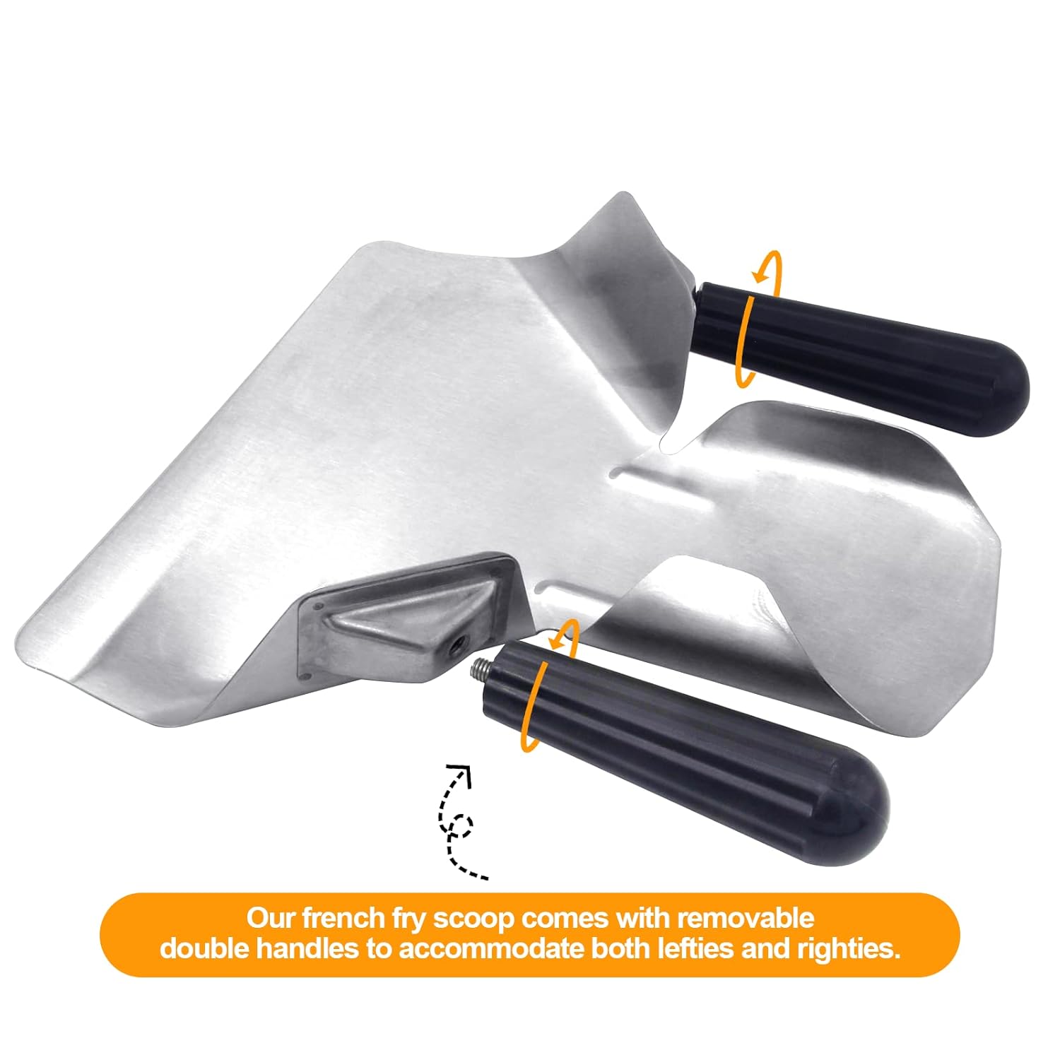 - 3. Multipurpose quick spoon: Easily and quickly place French fries or popcorn into bags, boxes, and bowls. High temperature resistant handle can prevent burns.