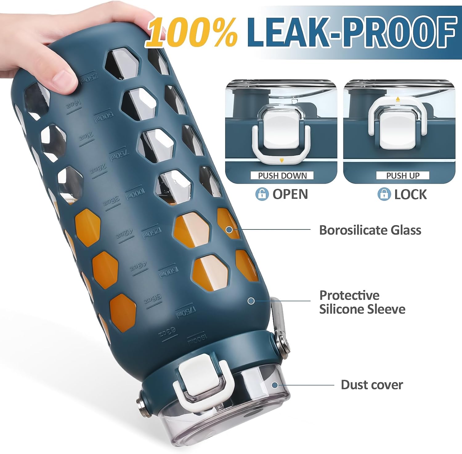 - GLASS BOTTLE WITH SILICONE COVER - The water bottle is designed with high-quality silicone cover, which is anti slip, heat insulation, and ice insulation, effectively protecting the inner liner, preventing scalding, wear-resistant, and sturdy.