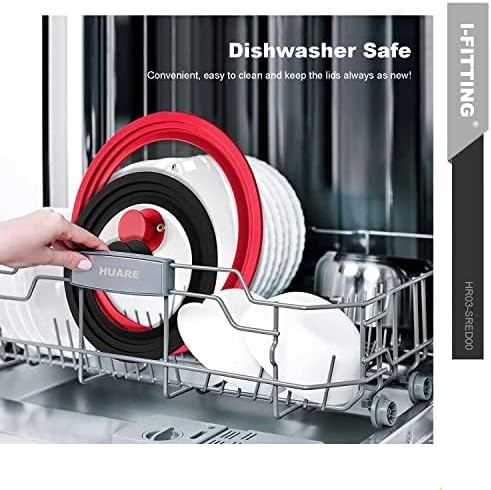 - 【UNIVERSAL LID WITH STEAM VENT】 Universal silicone glass cover lid suitable for pan/pot/skillet/saucepan/frying pan/soup pot , can fit 6.5", 7", 8” (16, 18, 20CM ) cookware. Designed with stainless steel steam vent, effectively prevent overflow during cooking