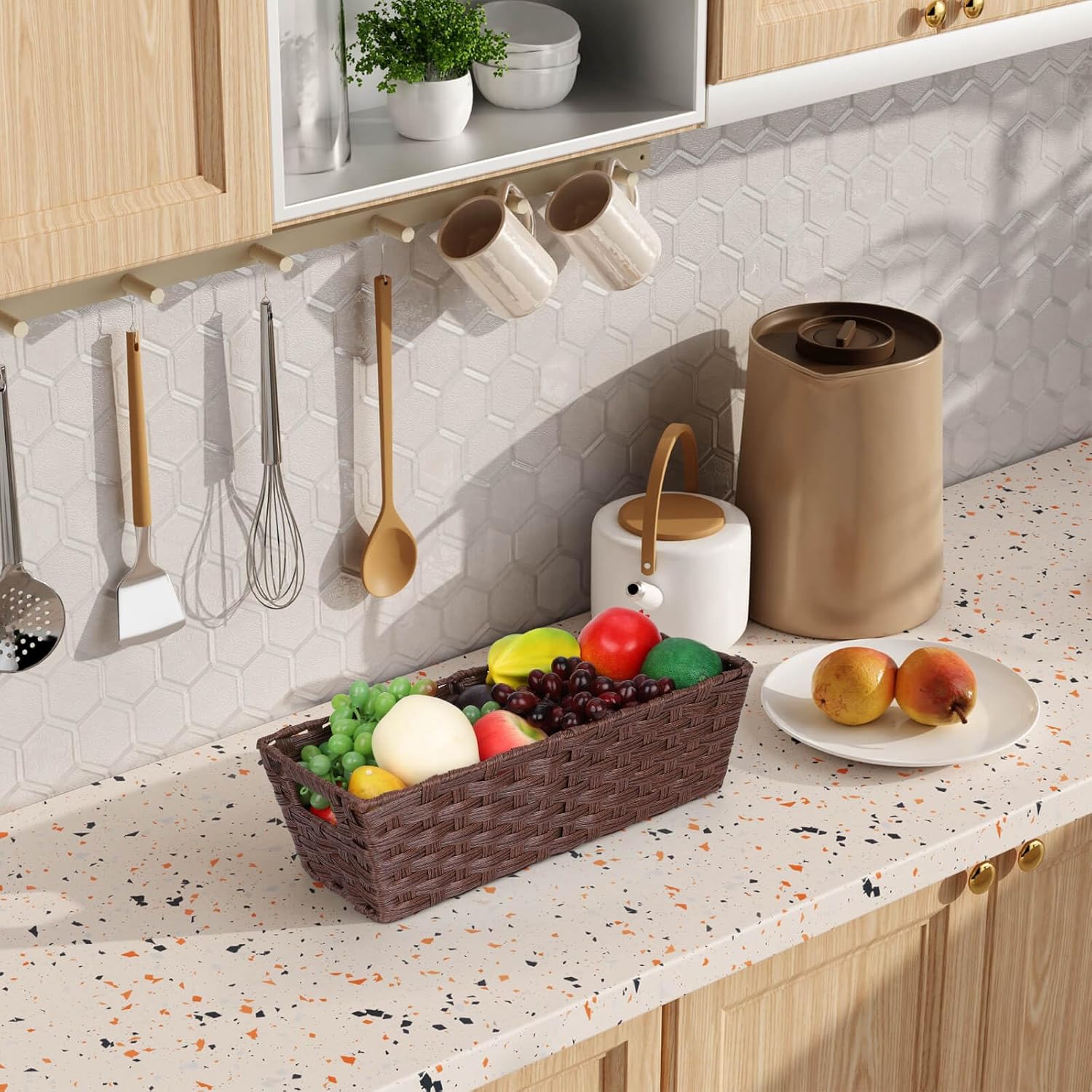 Plastic Wicker Storage Baskets - Toilet Tank & Bathroom Baskets, Woven for Organizing, Brown, 15¾" x 6¾" x 4¾", 2-Pack