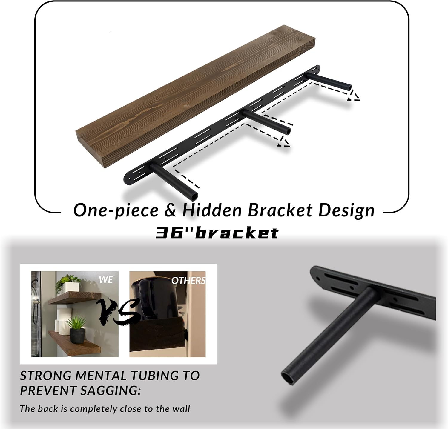 Rustic Floating Shelves 36 inch Long 8 inch deep Set of 2, Solid Wood Wall Shelves for Bedroom Living Room Kitchen,Book Shelf for Wall, Wall Mounted Shelves with Hidden Bracket- Walnut