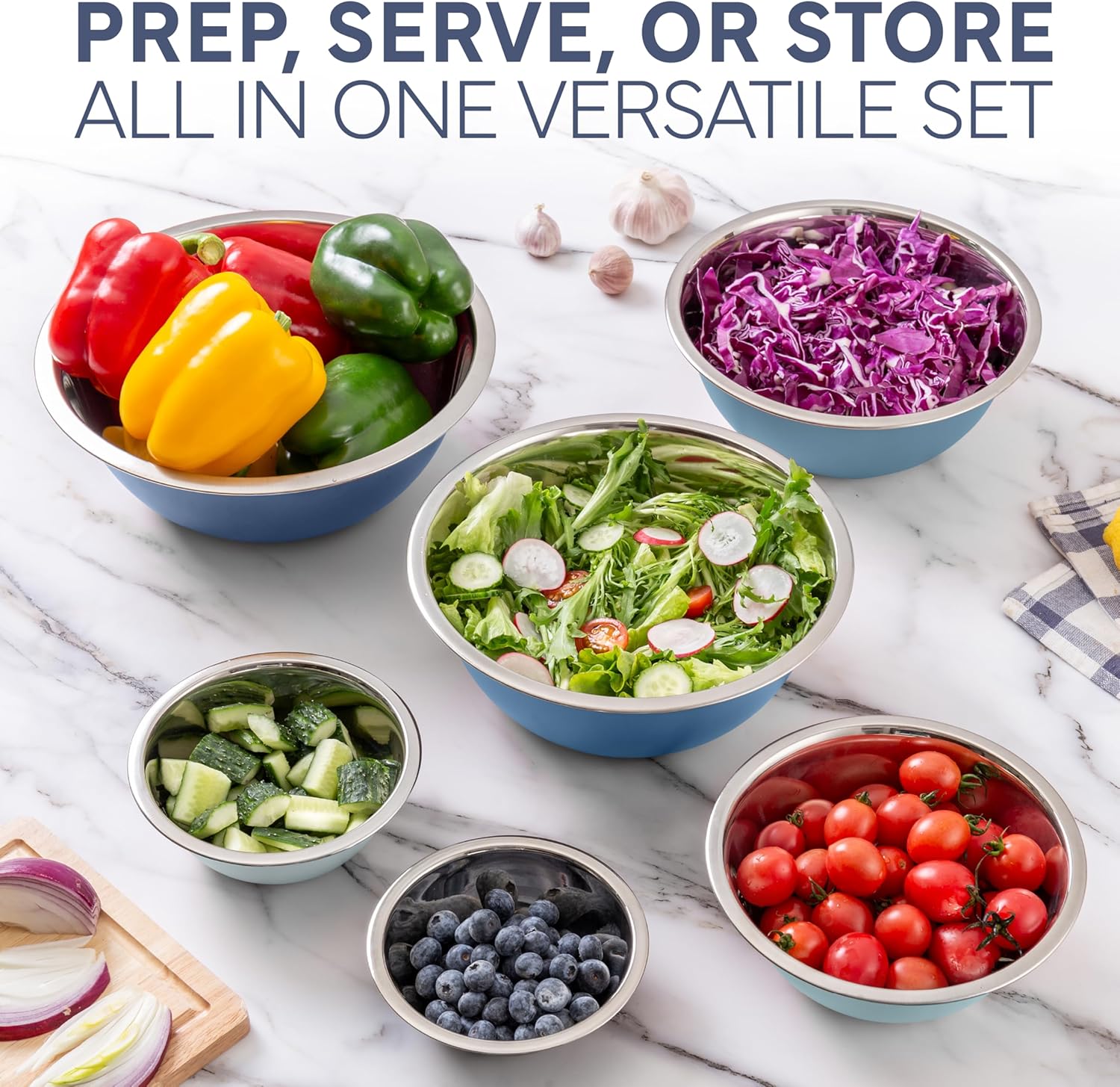 - Multiple Sizes - From mixing doughs, to prepper salad dressings, this bowl set has a size perfect for every dish.