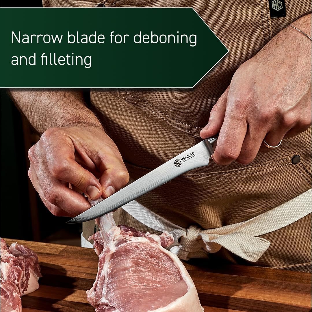 HexClad Boning Knife, 6-Inch Japanese Damascus Stainless Steel Blade, Pakkawood Handle