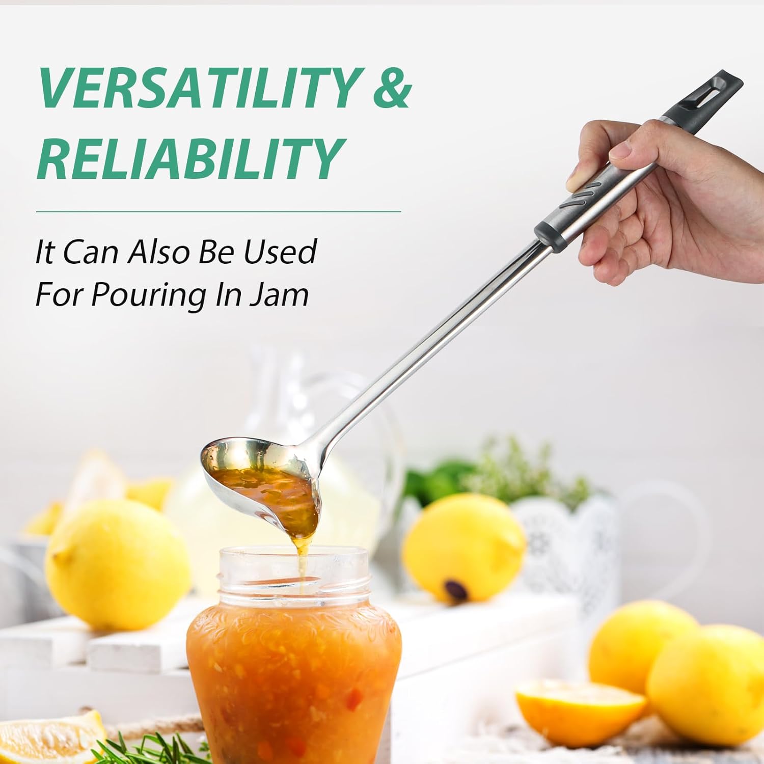 - 【HEAT-PROOF HANDLE】Vacuum ergonomic round handle of the drizzle spoon is for easily holding, reducing heat transfer, not easy to burn your hands