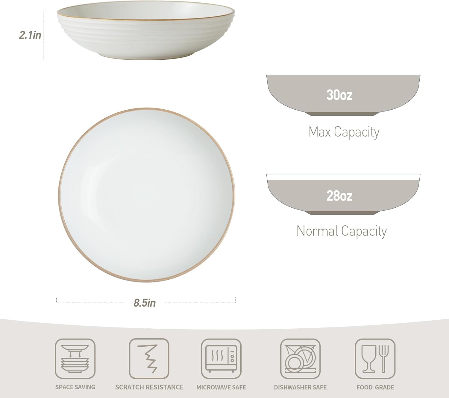 - 【Pasta Bowls Set of 4】30oz capacity can hold contents both solid and liquid, perfect for pasta, soup, dessert, ice cream, salad and so on.