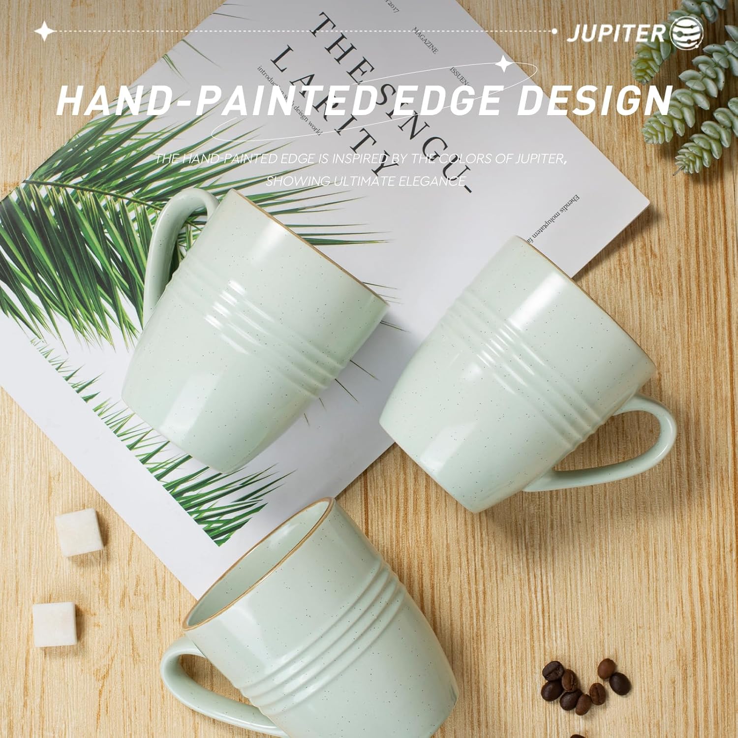 famiware Jupiter Coffee Mugs Set of 4, 14 OZ Coffee Mug, Microwave and Dishwasher Safe, Coffee Cups with Handle for Coffee, Tea, Cocoa, Milk, Light Green