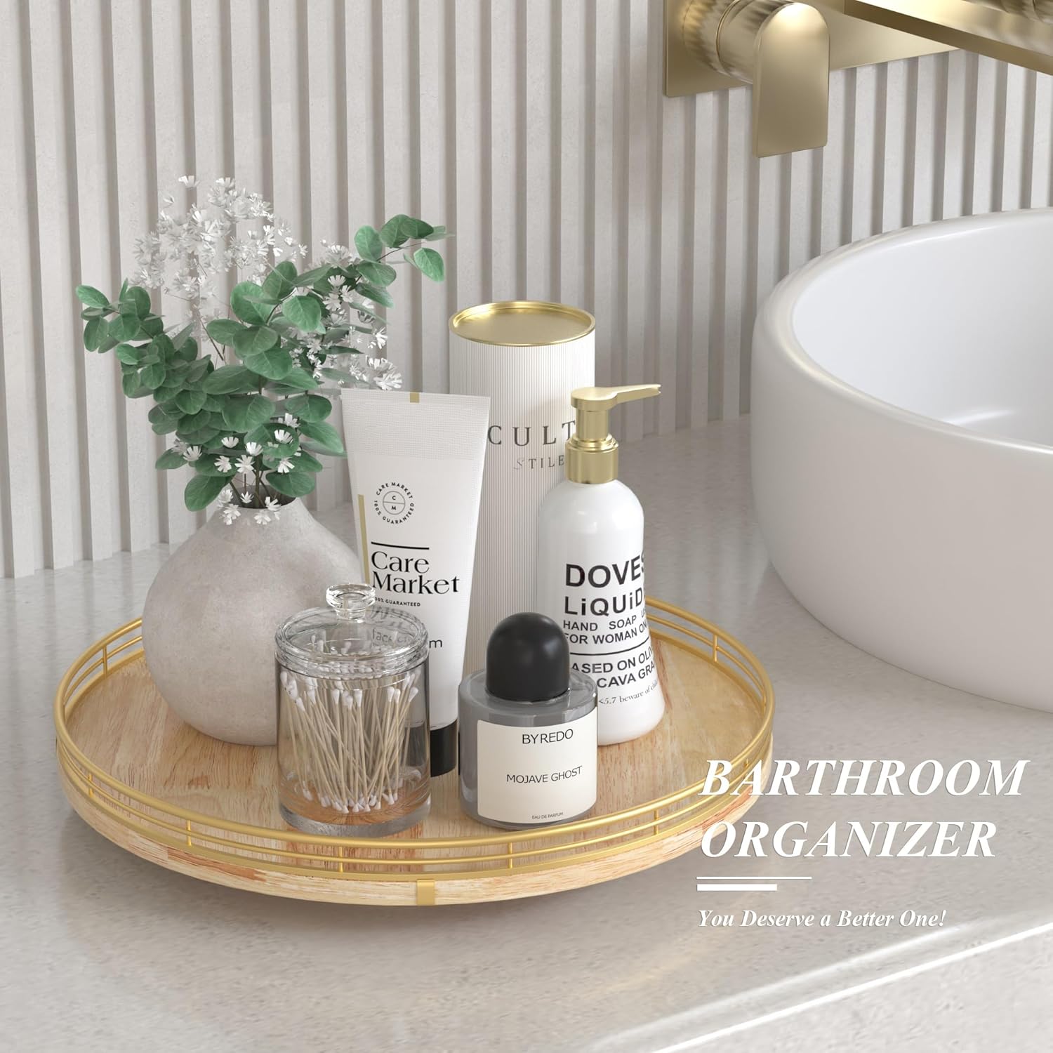 Farmhouse Oak 13" Lazy Susan Turntable Organizer for Cabinet, Round Wooden Lazy Susan Organization and Storage for Dining Table, Pantry, Kitchen, Countertop, Cupboard,Home Decor