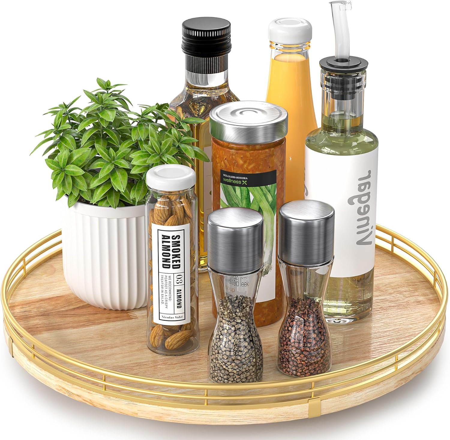 - πππΒ°ππππππππ :The base is made of solid wood, and the spinning mechanism is made of steel ball bearings, which are well-built and allow for 360Β°smooth spinning. This Lazy Susan is very attractive and very easy to use to keep your spices, condiments, and more organized and accessible.