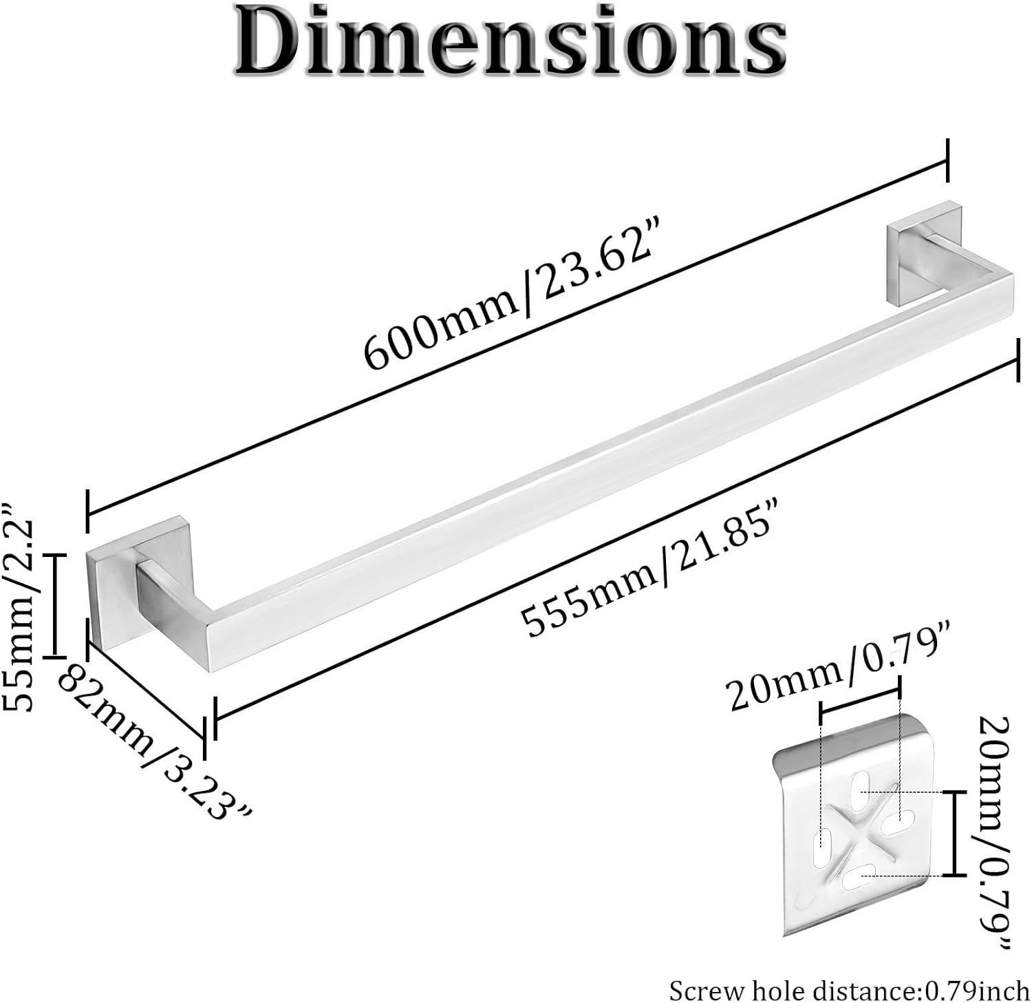 - 【Measure Before Buying】Dimensions 23.62''Lx2.2''Wx3.23''H, Useable Length 21.85 Inch towel hanger. 2.8 Inch Separation Distance from Wall - Enough space for quick drying, hanging towel quickly.No need to fold your towel any more.If you have any questions about the brushed nickel towel bar, please feel free to contact me at any time