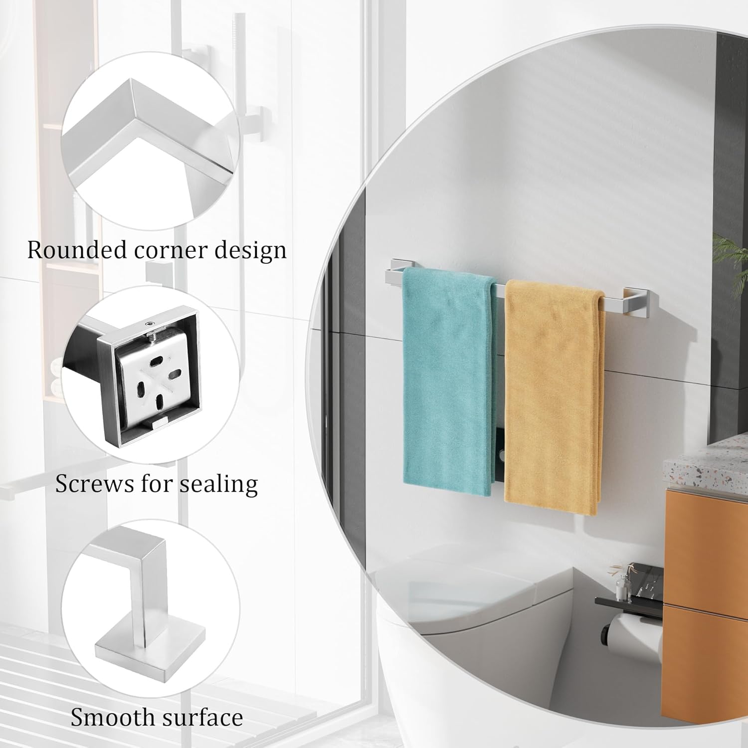 Alise Brushed Nickel Towel Bars,23.62 Inch Towel Holder Towel Racks for Bathroom and Lavatory,SUS304 Stainless Steel Hand Towel Hanger Rail Wall Mount,Useable Length 21.85 Inch Towel Bar, GYT060-LS