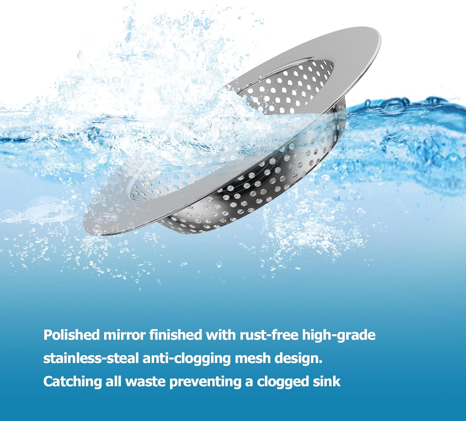 - [KITCHEN SINK DRAIN STRAINER] Made of 304 stainless steel, rust-free, and overall thickening, which is more sturdy and not deformed. Designde with 0.08 inch drain pore and large basket for collected food particles and debris. The drain strainer can keep draining smoothly even after it full catchered.Perfect for US standard kitchen sink drains (3-1/2" / 3-3/8" / 3-1/4").