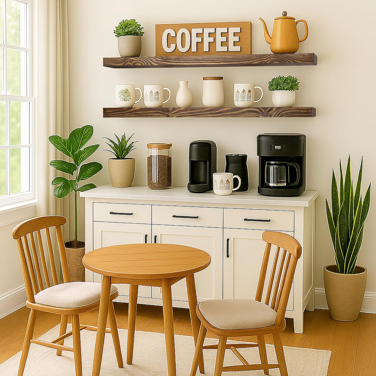 - Easy Installation: Installing our floating shelf is a breeze. With user-friendly instructions and included mounting hardware, you'll have it securely hung on your wall in no time, adding both charm and organization to your space.