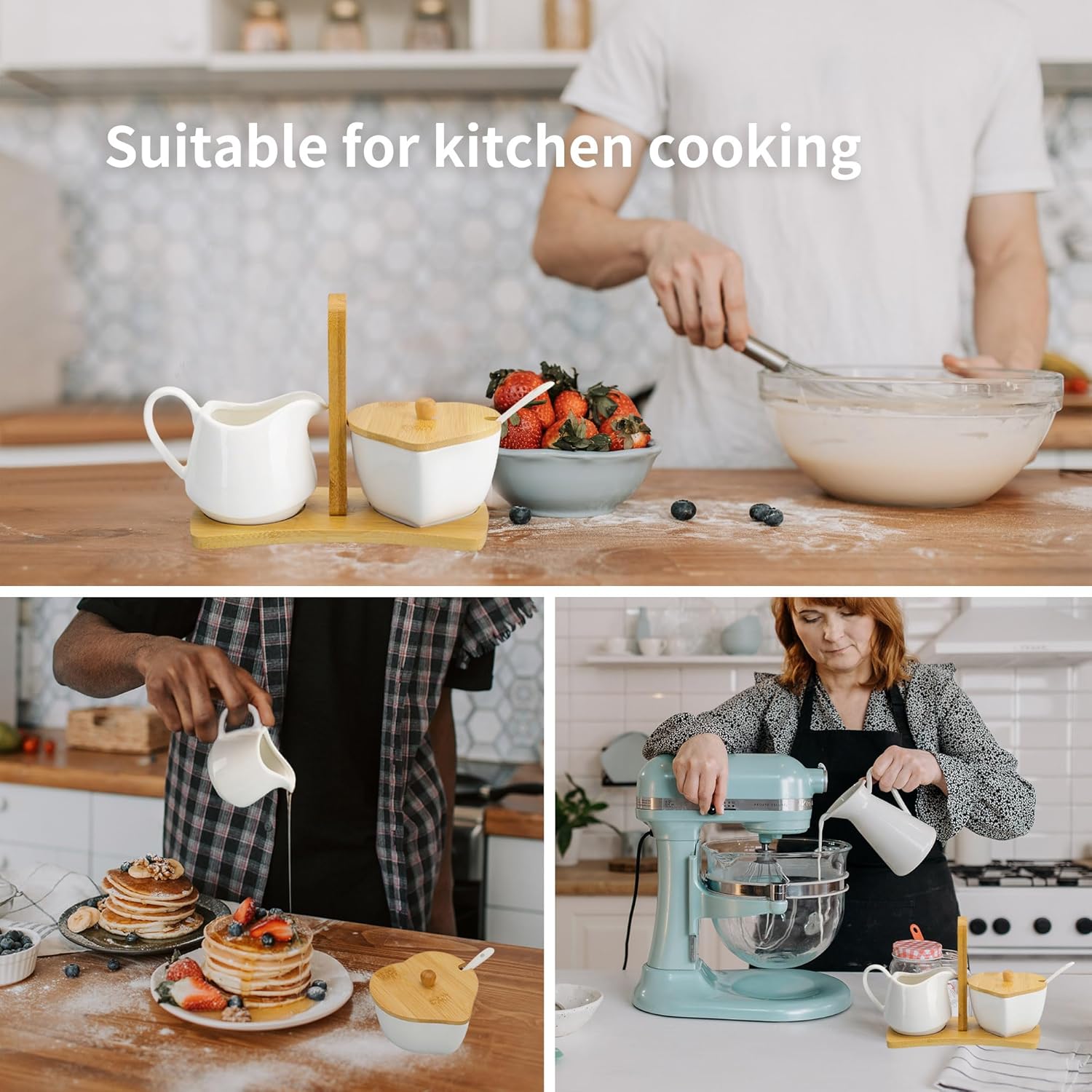 - MULTI-PURPOSE COFFEE SERVING SET - With the beautiful creative glaze that makes them stand out, this sugar jar is not just for sugar, it could also be used to store salt, curries, spices, honey, etc. While the Cream Pitcher is great for holding any liquid like milk, cream, syrup, etc. They are a nice addition when serving coffee or tea to your guests.
