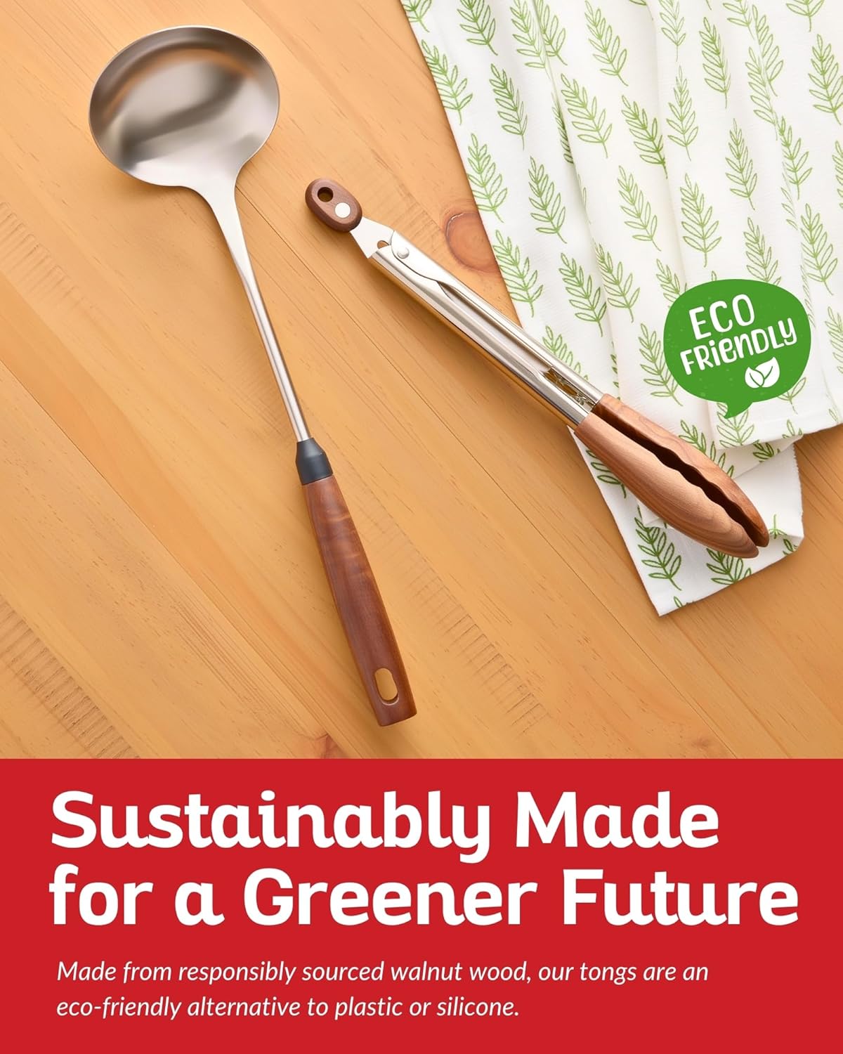 - STRONG GRIP & EASY TO CLEAN: This food tong offers a comfortable stainless steel grip and is effortless to clean, adding convenience to your kitchen routine. Practical walnut tong for daily use, fitting well within any kitchen utensils set.