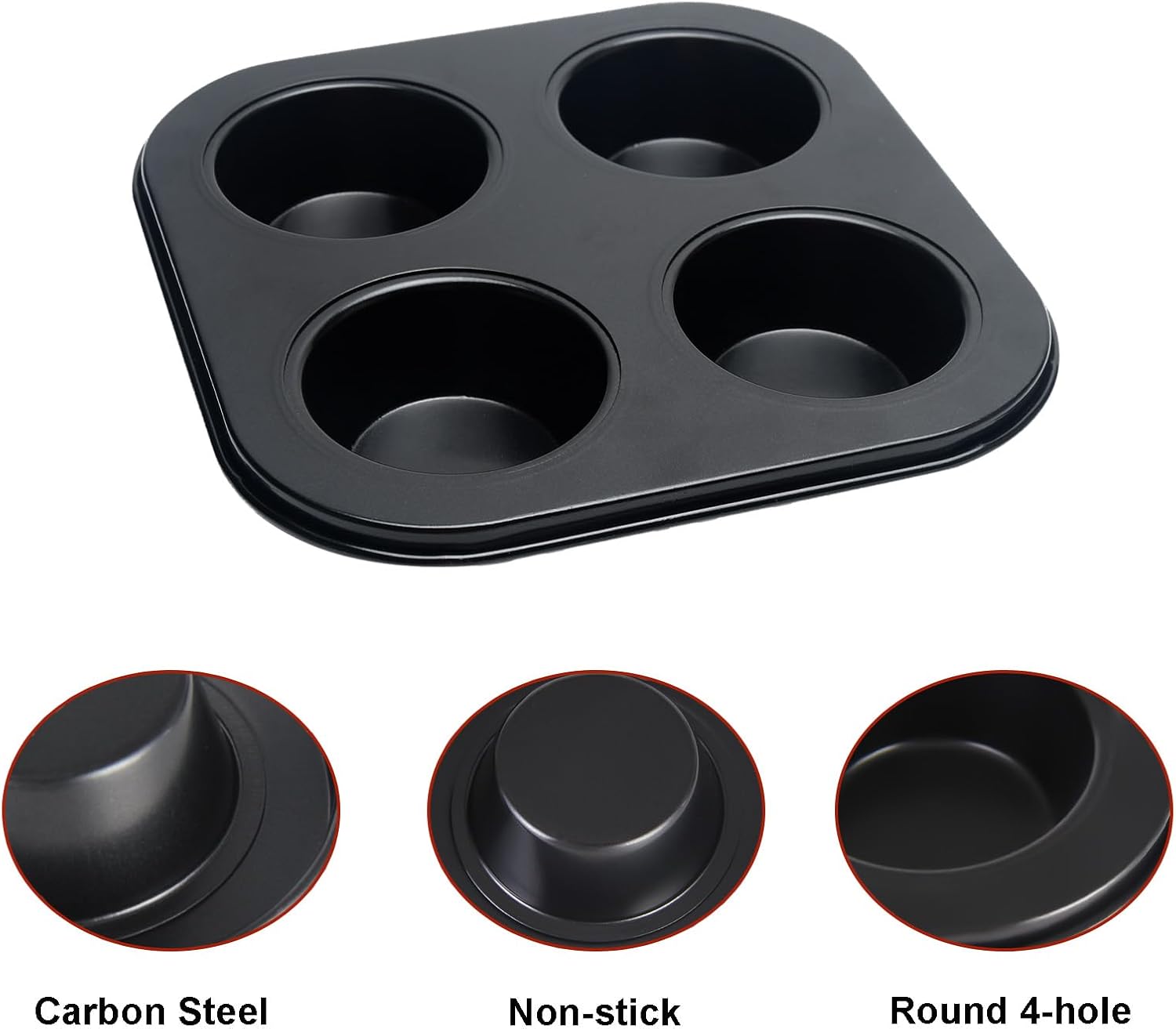 - High Quality: The Non-Stick 4-Hole Standard muffin pan is made from heavy duty tinplate materials for superior heat conduction and even baking