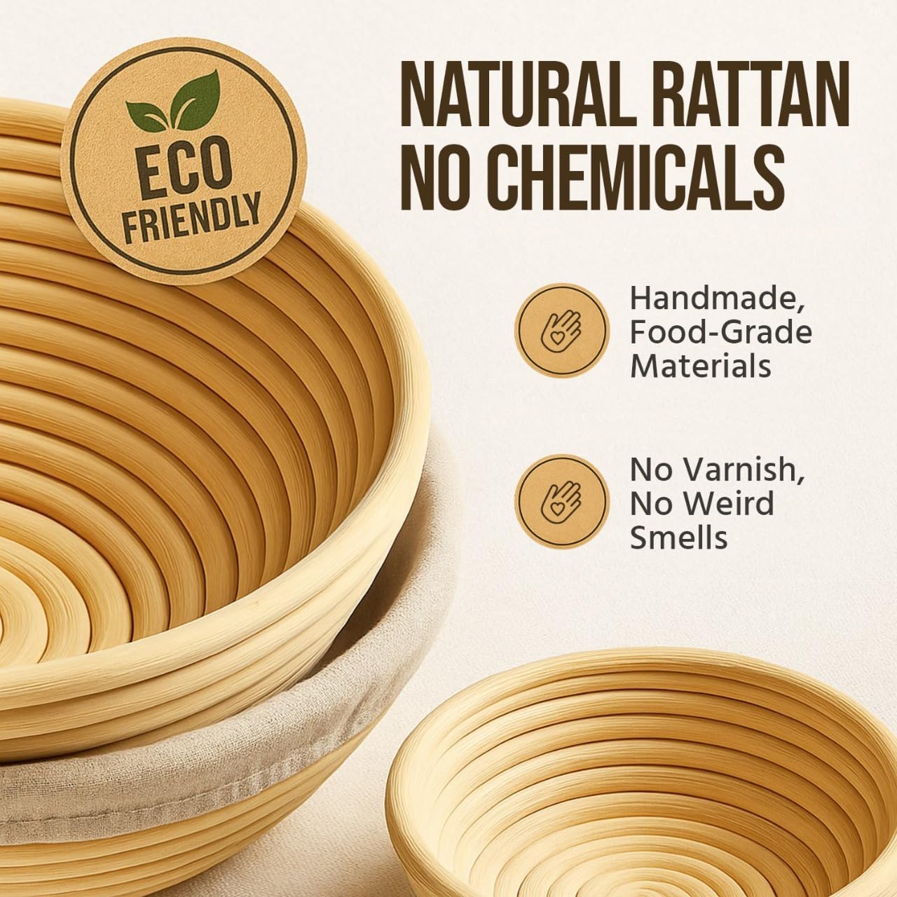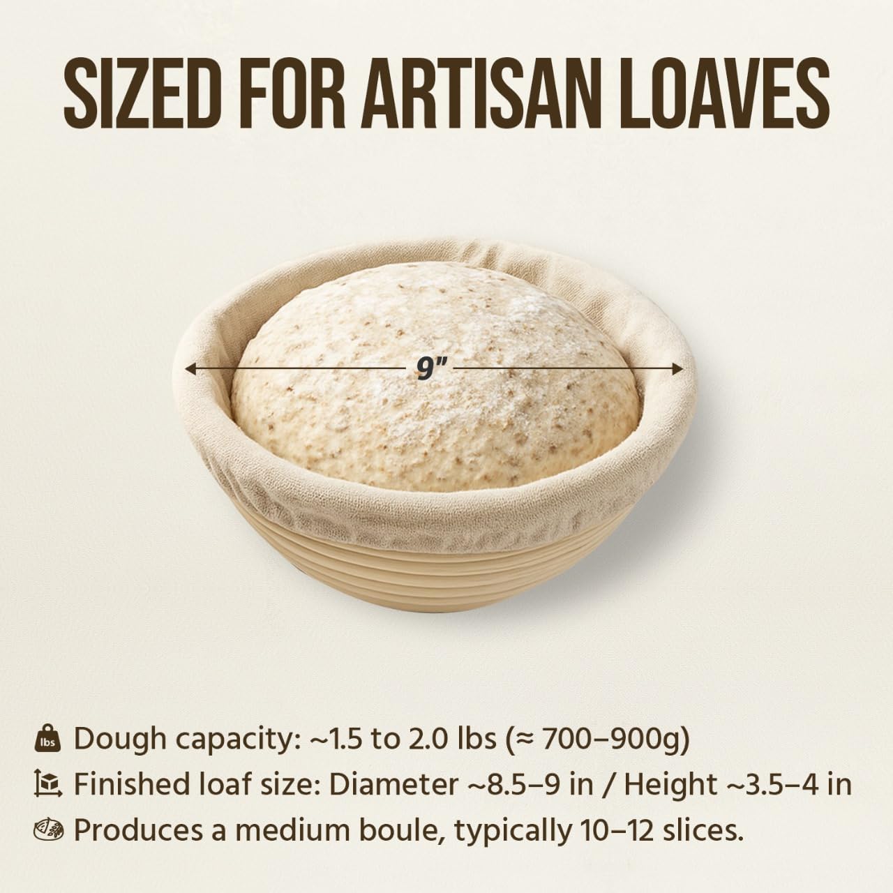 - CRUSTS THAT DAZZLE, FLAVORS THAT WOW – Made from premium natural rattan, our bread proofing basket helps your dough achieve that professional-grade crust. Pair it with our included sourdough baking supplies to make loaves that look and taste incredible Our Sourdough essentials kit includes Round 9-inch 2X Proofing Baskets, Dough Whisk, Bread Lame with Blades, Brush, Flour Duster, Plastic Bowl Scraper, Bannton Liner, Metal Dough Scraper, and Recipe Book. "